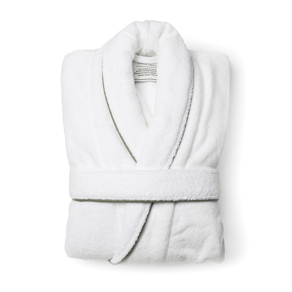 Lussuoso accappatoio in 100% cotone.Modello classico con collo extra largo e cintura in vita. Ha anche molti bei dettagli, come cuciture chiuse e bordi a contrasto sul colletto. Realizzato in lunghe fibre di cotone con fili non ritorti. Il risultato è un accappatoio incredibilmente morbida che non vorrai mai togliere. 450 g/m²