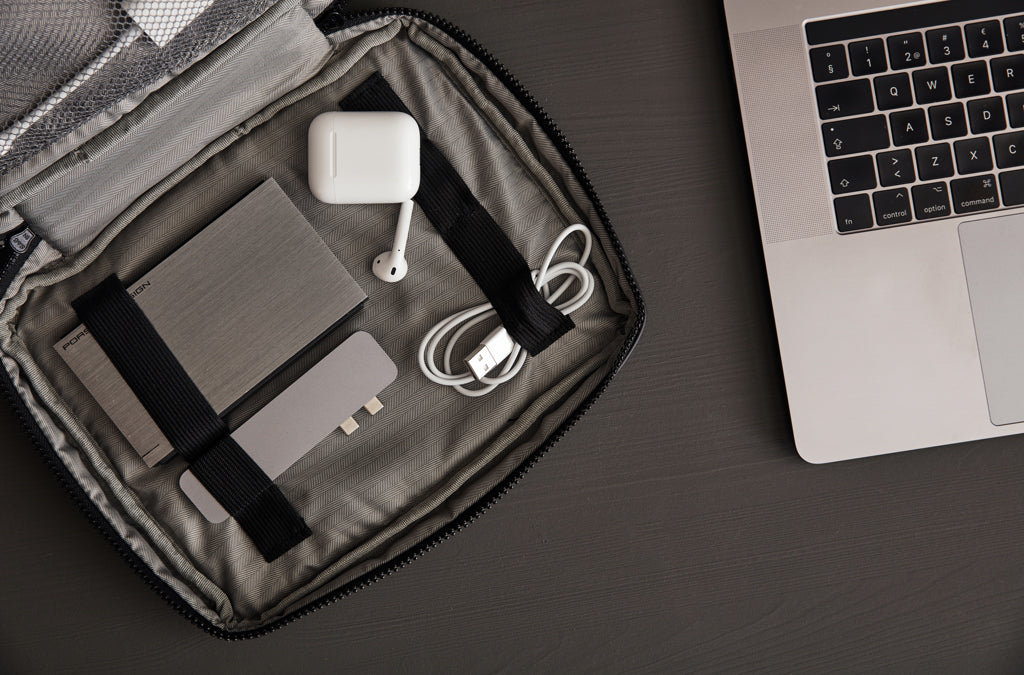 Tieni tutto l'essenziale a portata di mano con questo pratico organizer. Può contenere tutto ciò di cui hai bisogno durante la giornata, come auricolari, powerbank, penne e un taccuino. Il moschettonelaterale ti permette di agganciarlo alla tua borsa o al tuo zaino. Capacità L 2,6