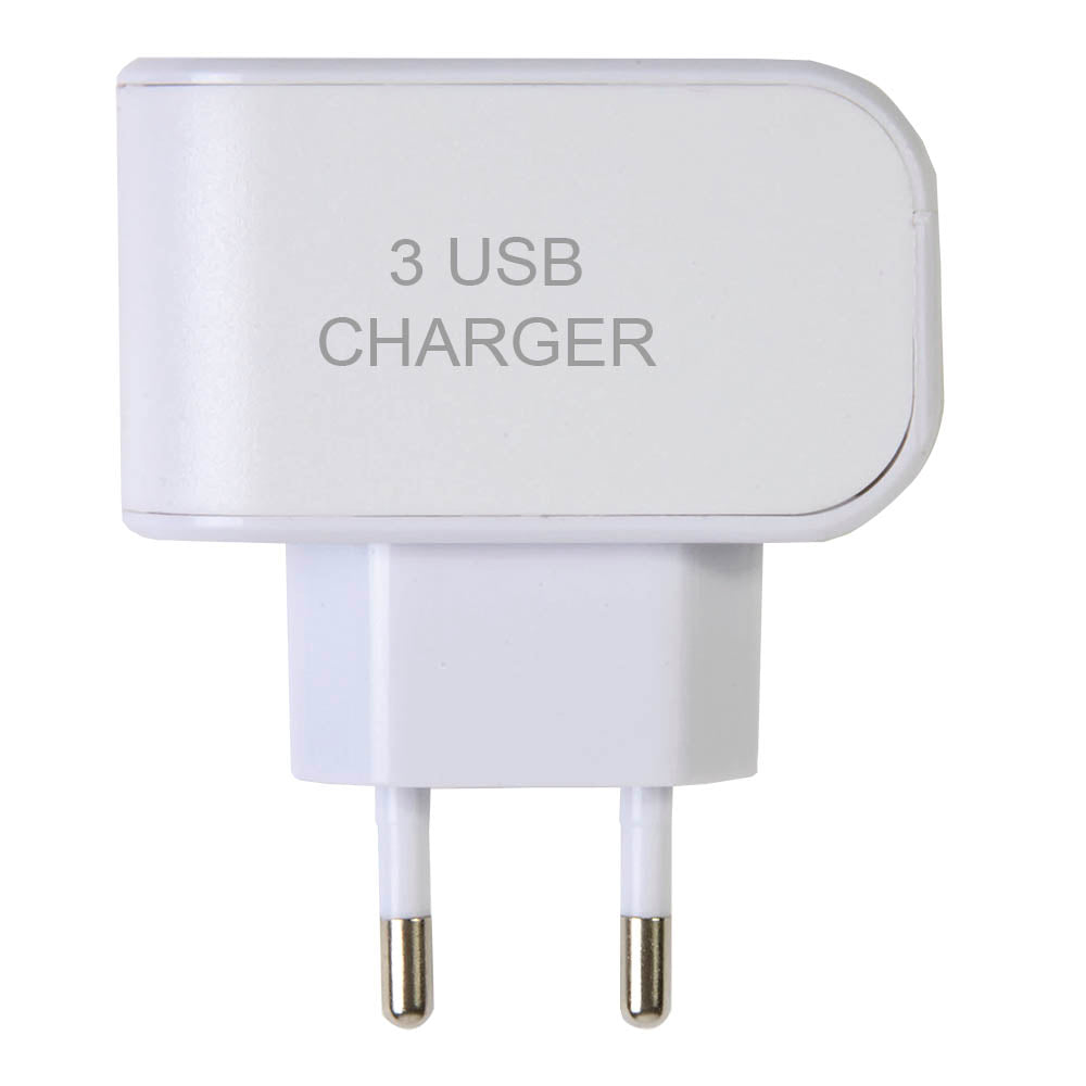 Caricatore multi-porta USB da parete ,in plastica con tre ingressi. Modello in bianco disponibile in 1 colore