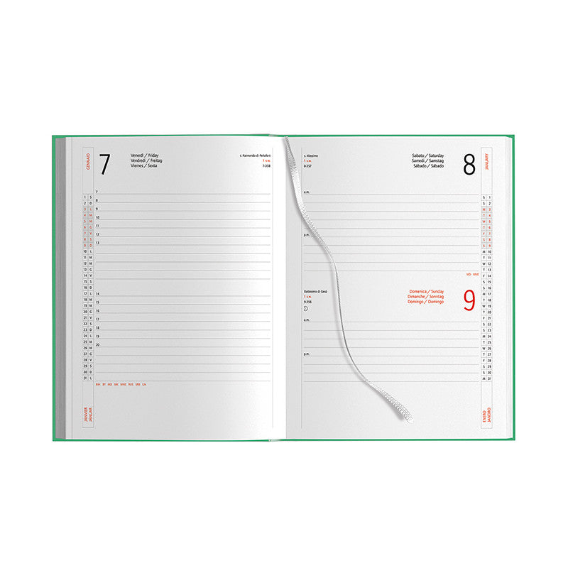 Agende promozionali giornaliere 2024, da personalizzare con logo, con 320 pagine sabato e domenica abbinati, carta bianca con stampa a 2 colori, edizione multilingue: IT - GB - FR - DE - ES - PT, quadranti imbottiti, rubrica telefonica, inserti informativi, segnapagine, astuccio su richiesta. Le agende personalizzate 2024 come per gli anni passati possono essere dei regali aziendali molto usati come gadget natalizi: sono articoli pubblicitari che vengono regalati in dicembre prima delle feste.