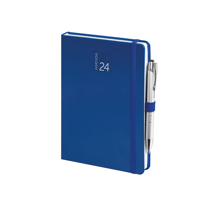 Agende da personalizzare con logo, sono giornaliere con 324 pagine, sabato e domenica abbinati, carta bianca con stampa a 2 colori, edizione multilingue: IT - GB - FR - DE - ES - PT, inserti informativi e rubrica telefonica, segnapagine, chiusura con elastico, portapenne, corredato di astuccio. Le agende personalizzate con logo sono uno di quei gadget promozionali che non stancano mai, ogni anno che passa le persone che utilizzano questi articoli pubblicitari vogliono avere il ricambio per continuare ad usarle. Ricordati che sono ancora oggi dei regali aziendali molto apprezzati come gadget natalizi.