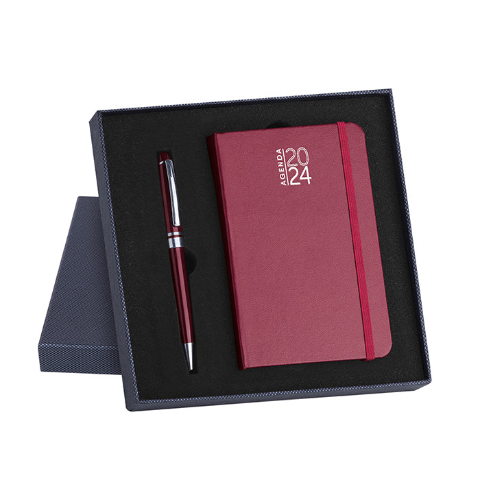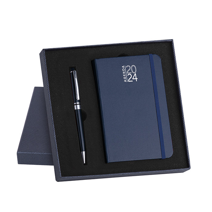 Parure composta da penna personalizzabile ed agenda notes da personalizzare, settimanale con 192 pagine: 128 agenda, 12 turnario, 20 per le note, 16 con perforatura removibile verticale e 16 con talloncini removibili. Ha tasca posteriore interna per biglietti e cards, quadranti ad angoli tondi e chiusura con elastico. Ci sono diversi tipi di agende personalizzate 2024, trova gli articoli promozionali più adatti alla tua attività e trasformali in gadget pubblicitari validi per diffondere il tuo logo. Sono dei gadget personalizzati molto utlizzati come regali natalizi aziendali.