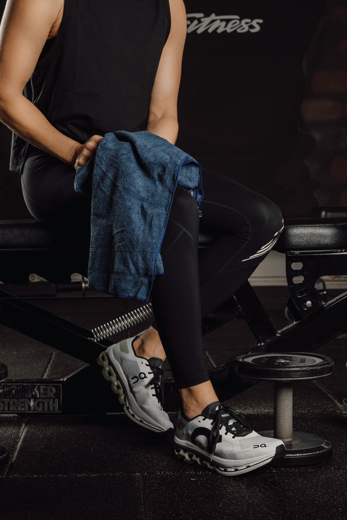Asciugamano active dry VINGA in RPET GRS. Articolo in blu disponibile in 3 colori