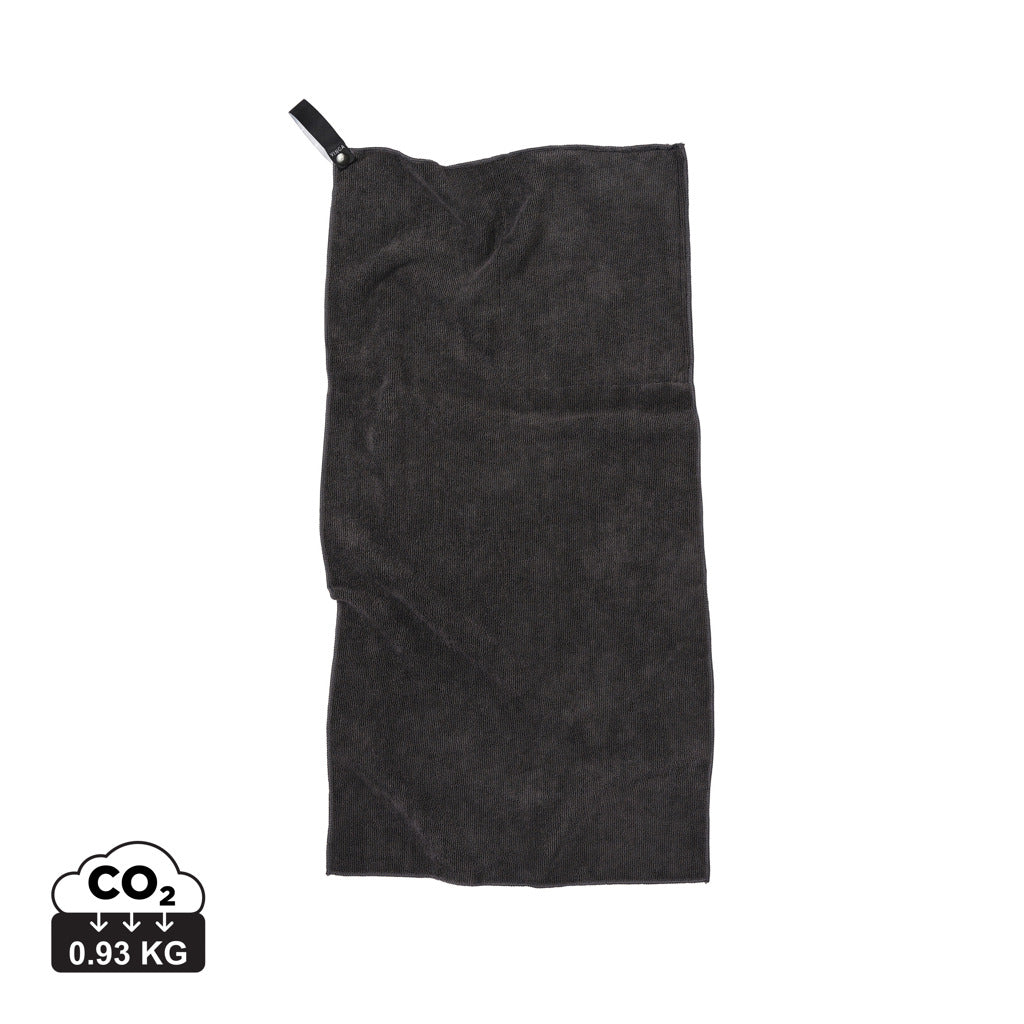 Asciugamano active dry VINGA in RPET GRS. Modello in nero disponibile in 3 colori