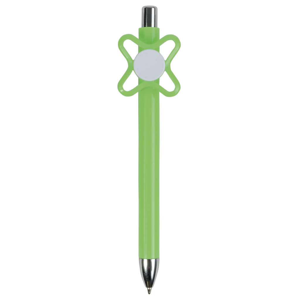 Penna a scatto in plastica colorata con spinner colorato. Variante in verde disponibile in 6 colori