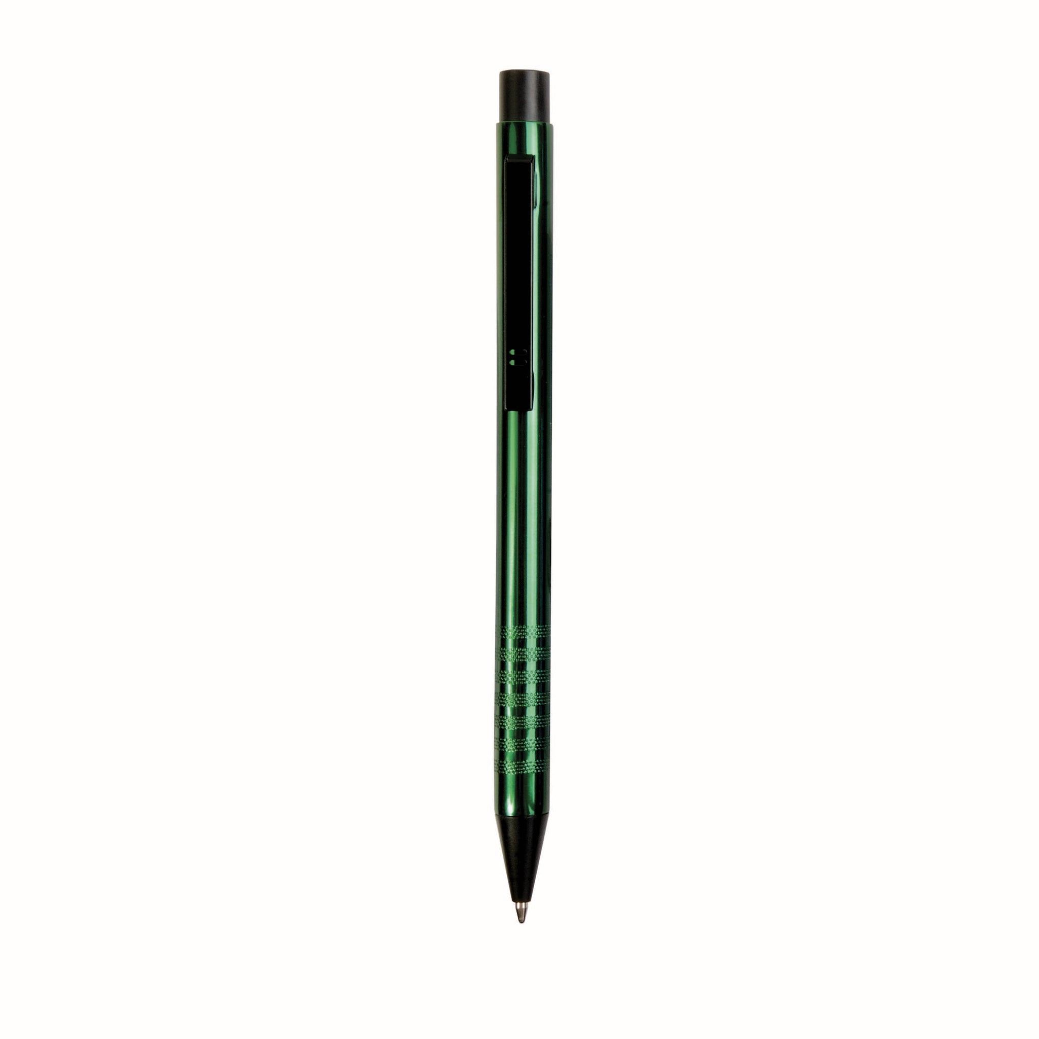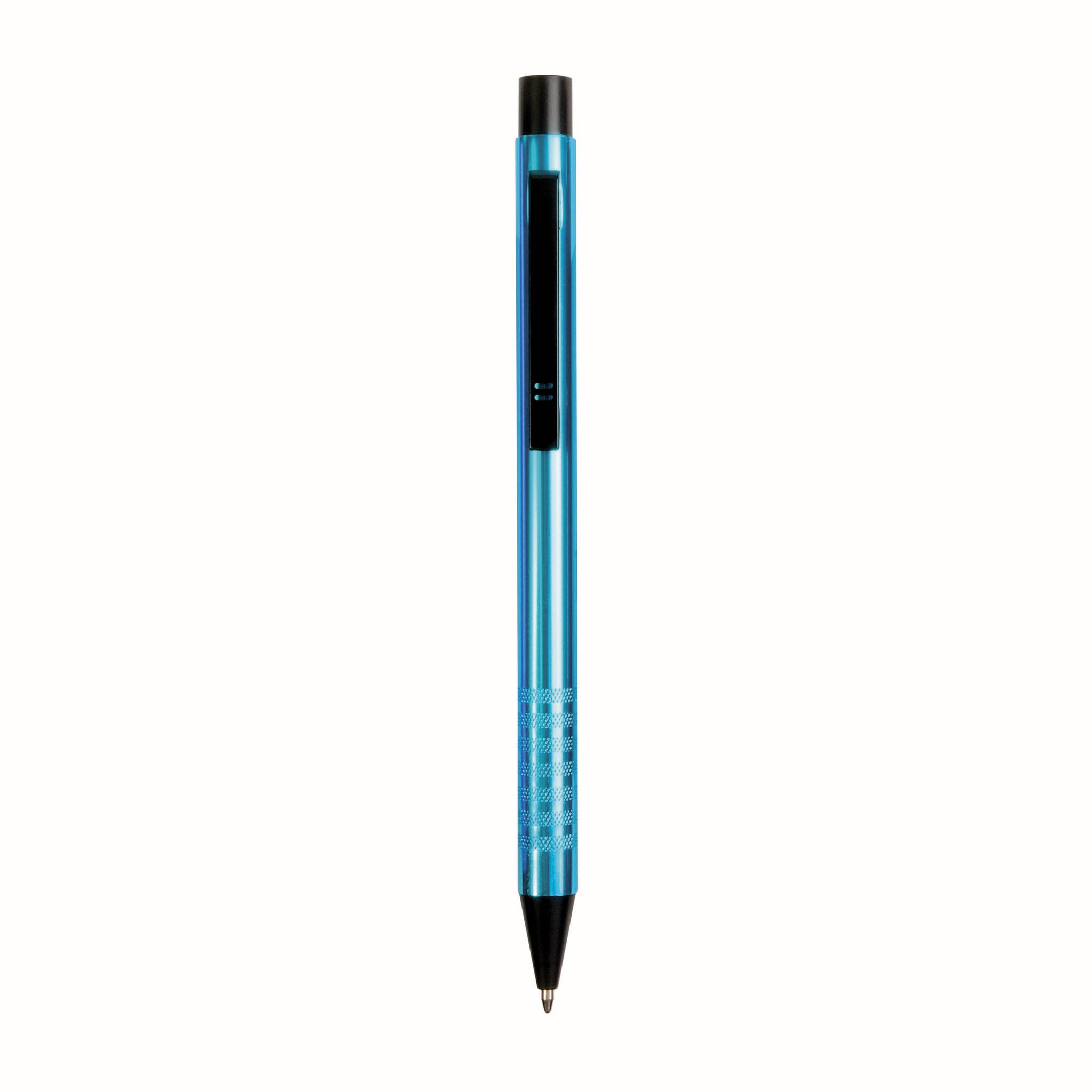 Penna in alluminio con clip nera in metallo. Variante in azzurro disponibile in 7 colori