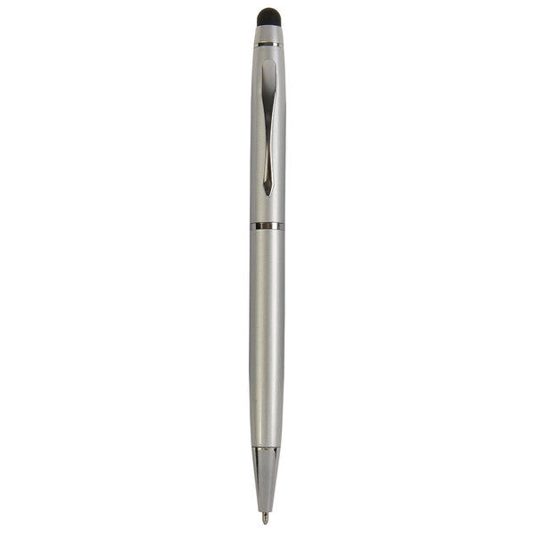 Penna twist in metallo colorata, con gommino per touch screen in tinta. Modello in nero disponibile in 5 colori