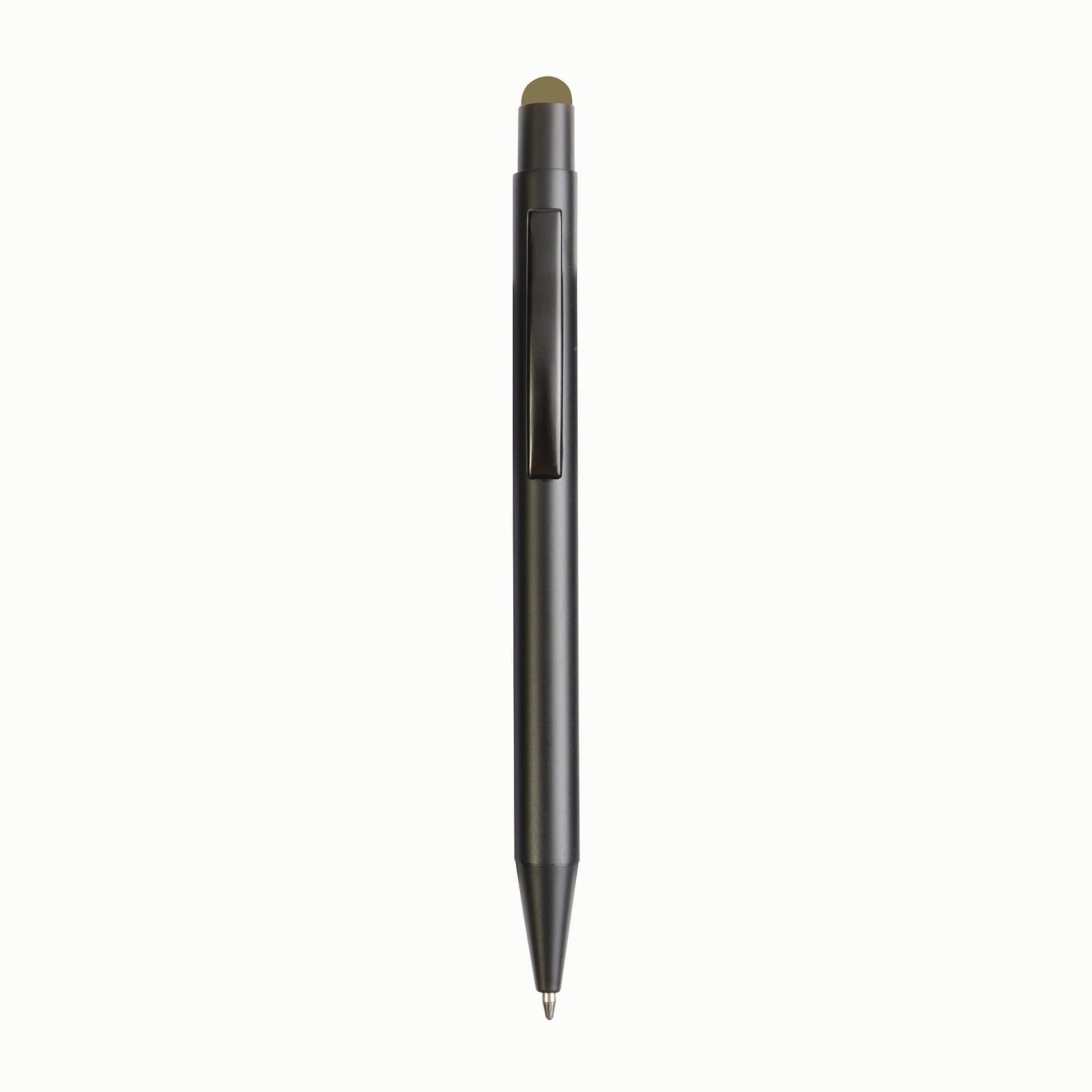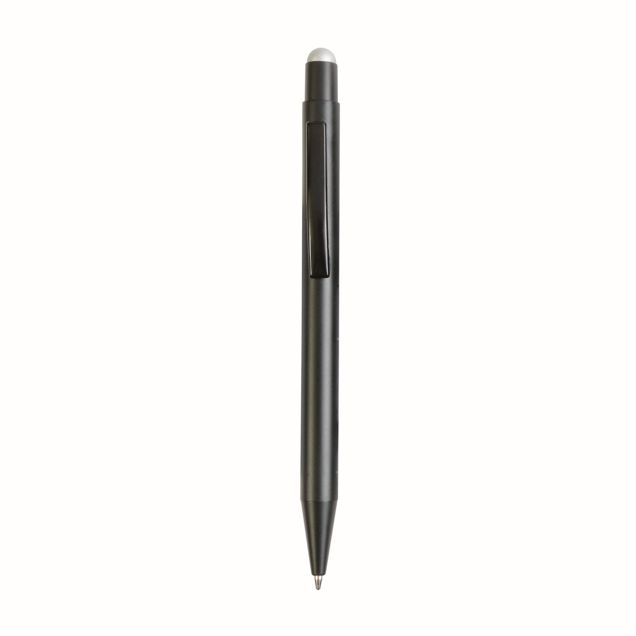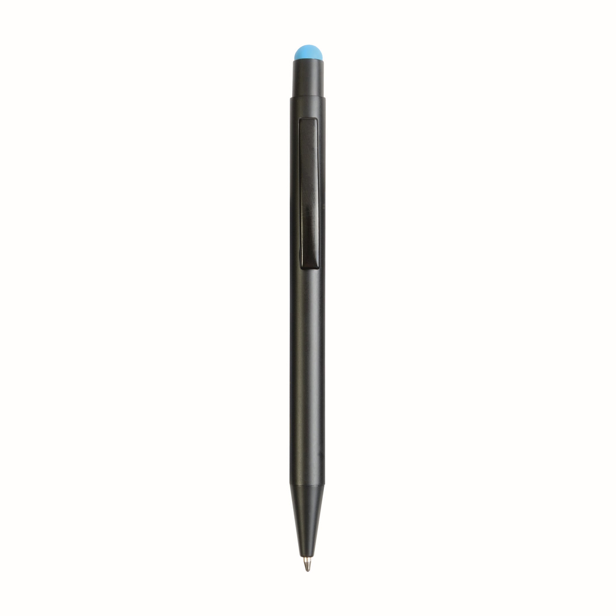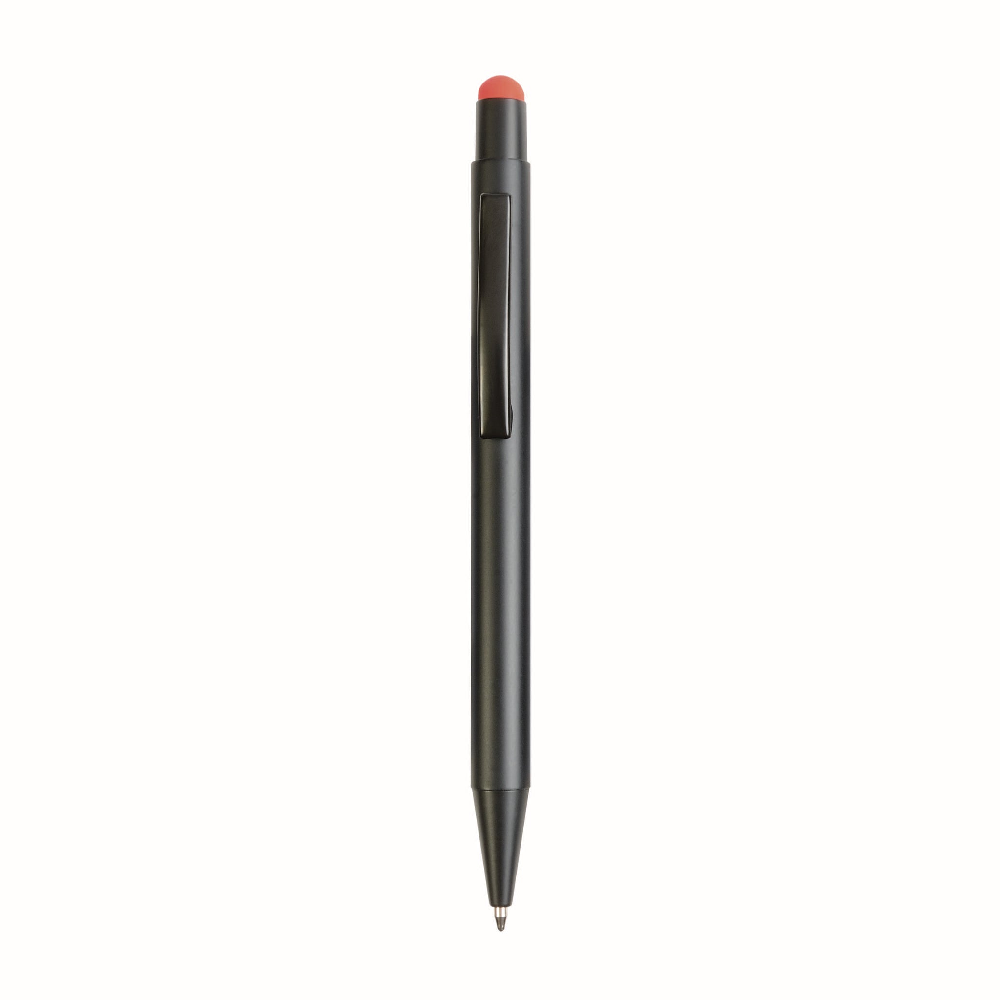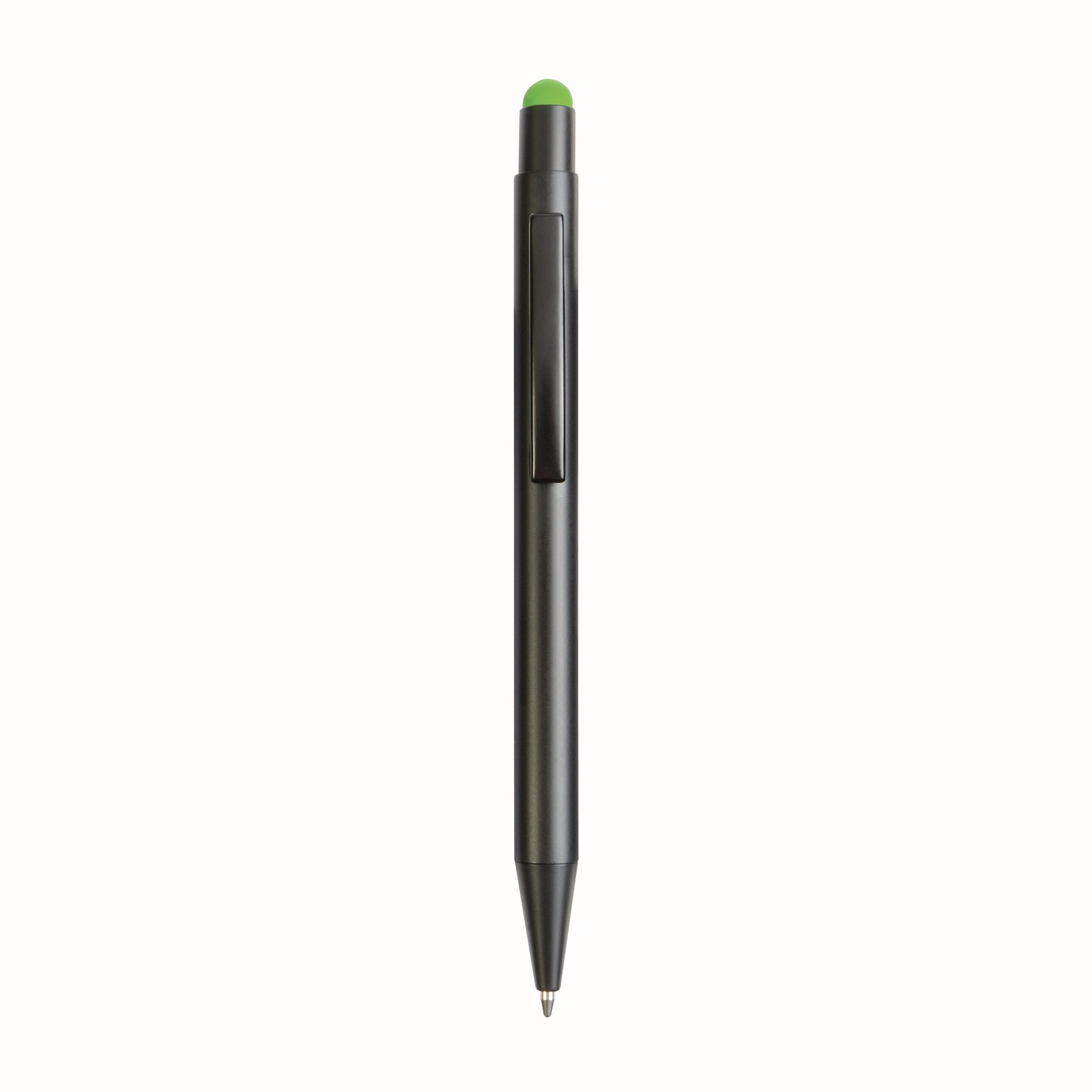 Penna a scatto in alluminio con touch screen. Il logo inciso a laser diventa dello stesso colore del touch screen.