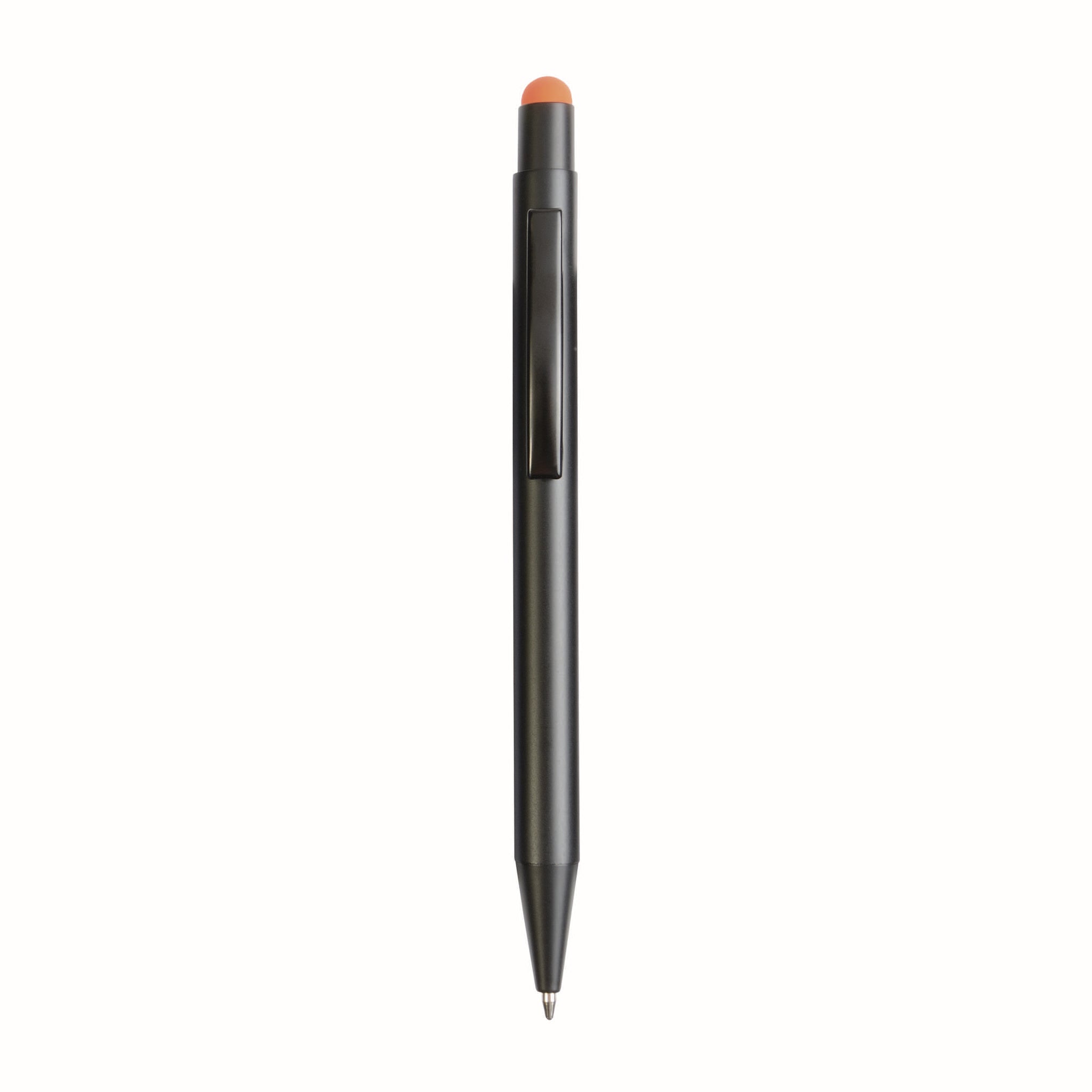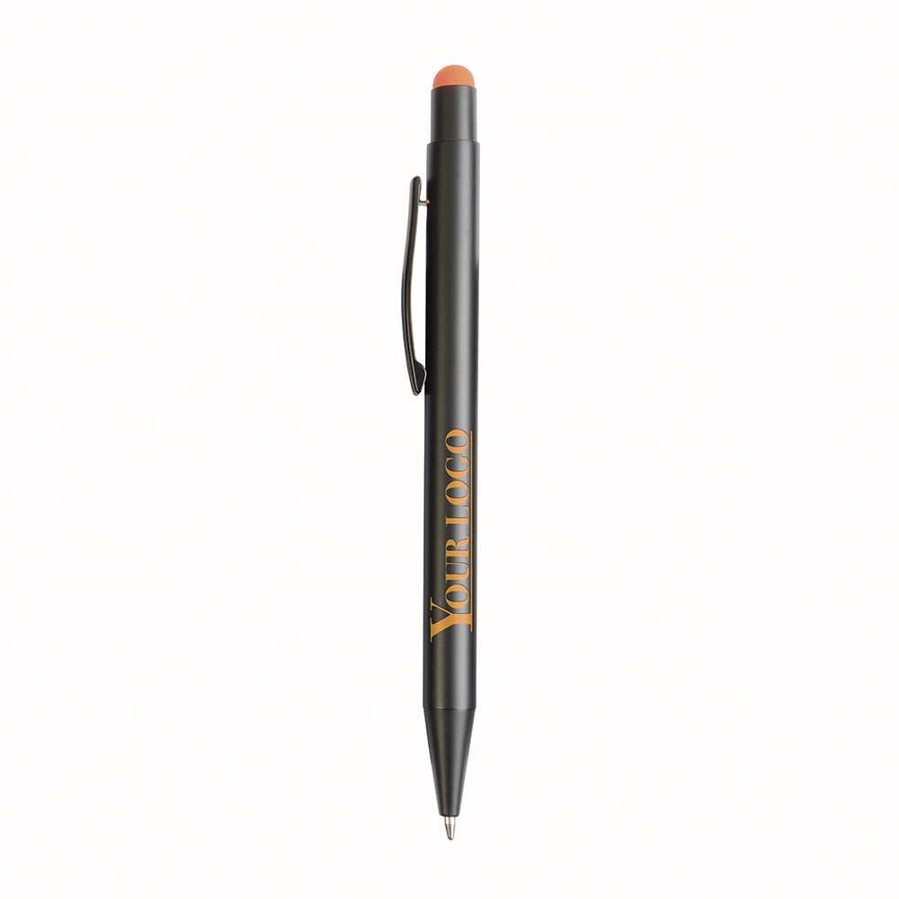 Penna in alluminio. Il logo inciso a laser diventa dello stesso colore del touch screen.. Articolo in arancione disponibile in 7 colori