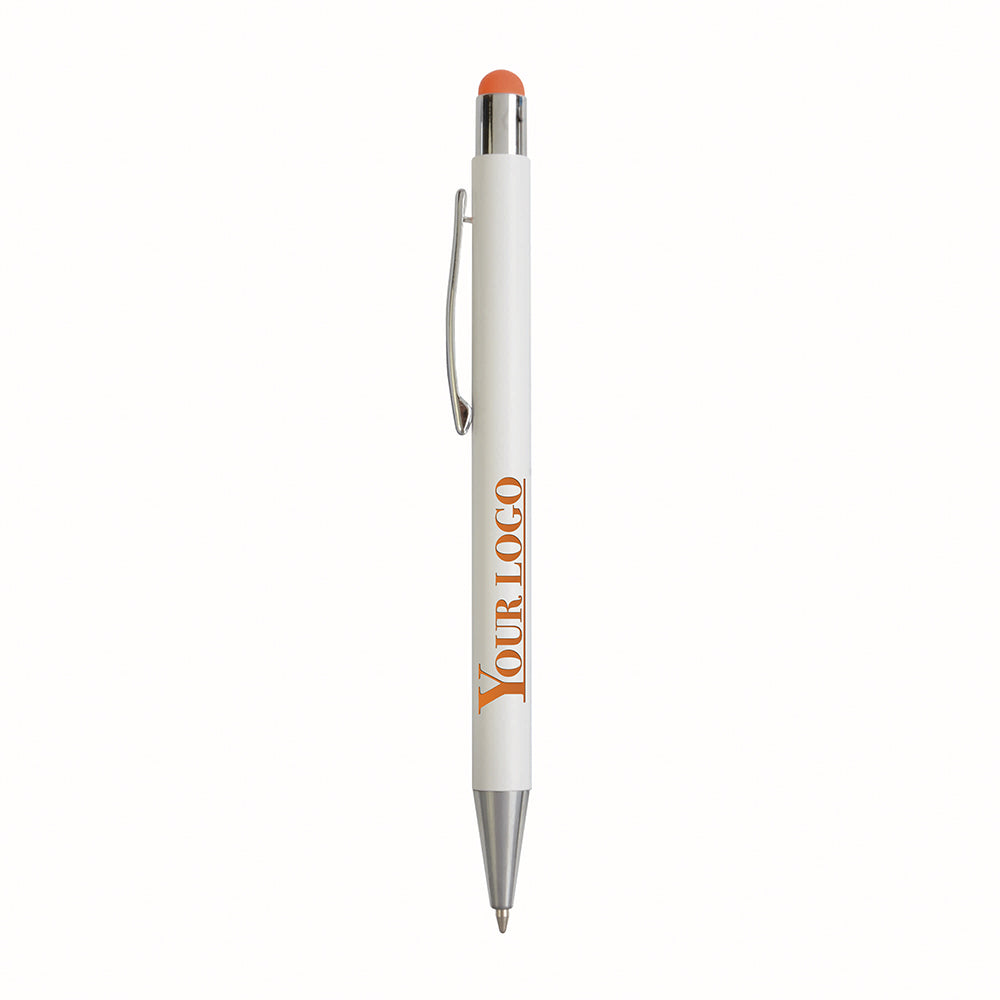 Penna in alluminio. Il logo inciso a laser diventa dello stesso colore del touch screen.. Modello in arancione disponibile in 5 colori