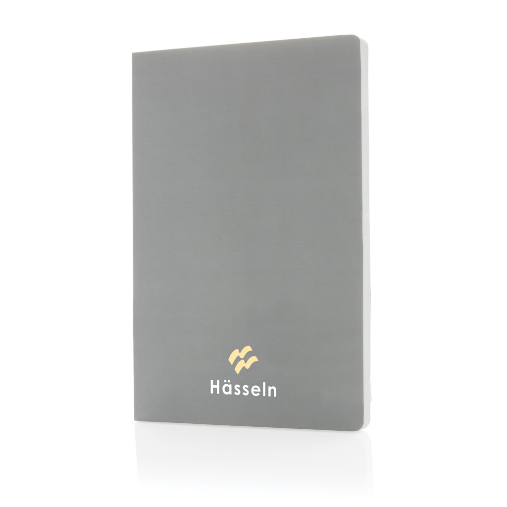 Taccuino A5 Impact con copertina morbida e carta di pietra. Variante in grigio disponibile in 8 colori