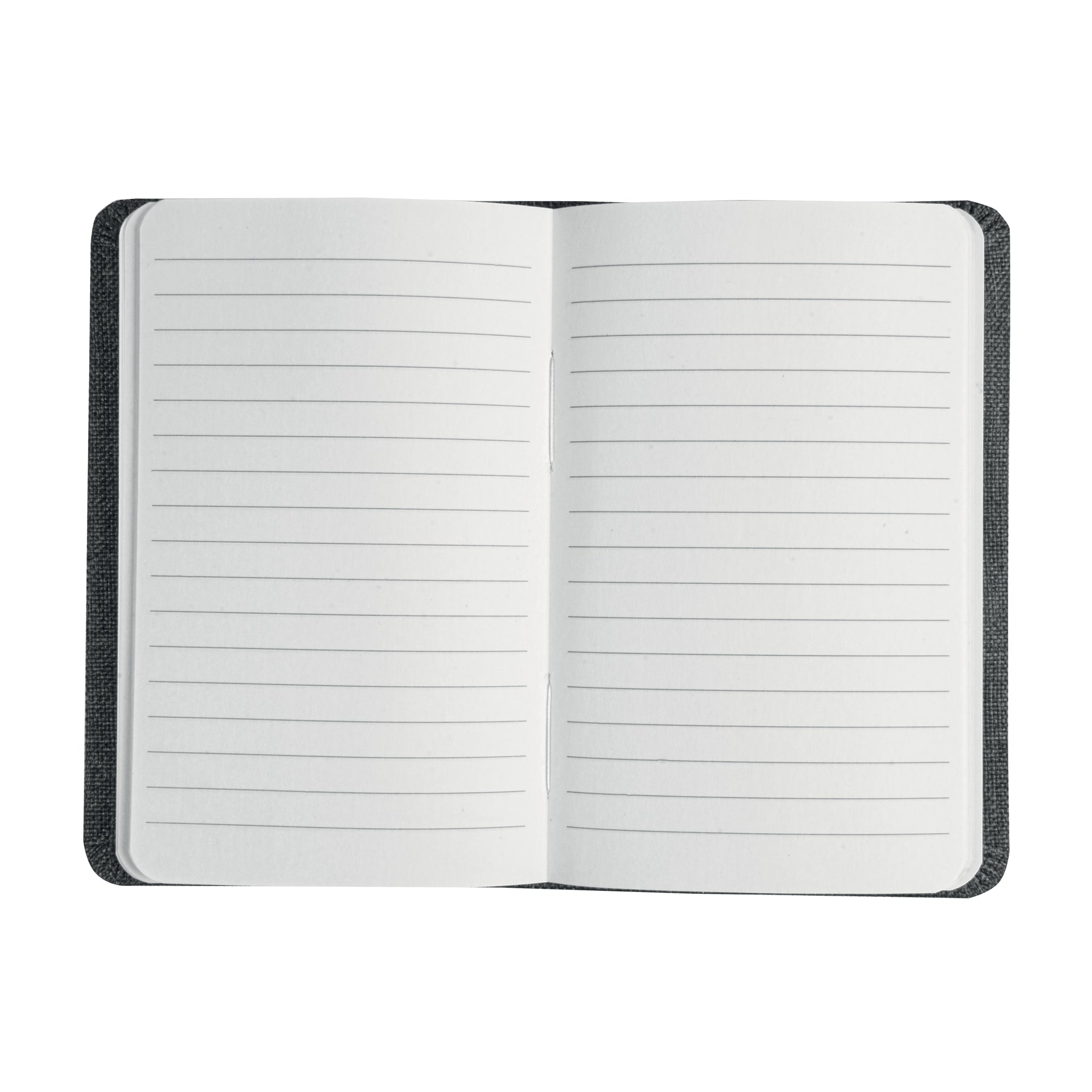Quaderno con copertina in R-Pet, con elastico, fogli a righe color bianco, 80 pag., 9X14 cm