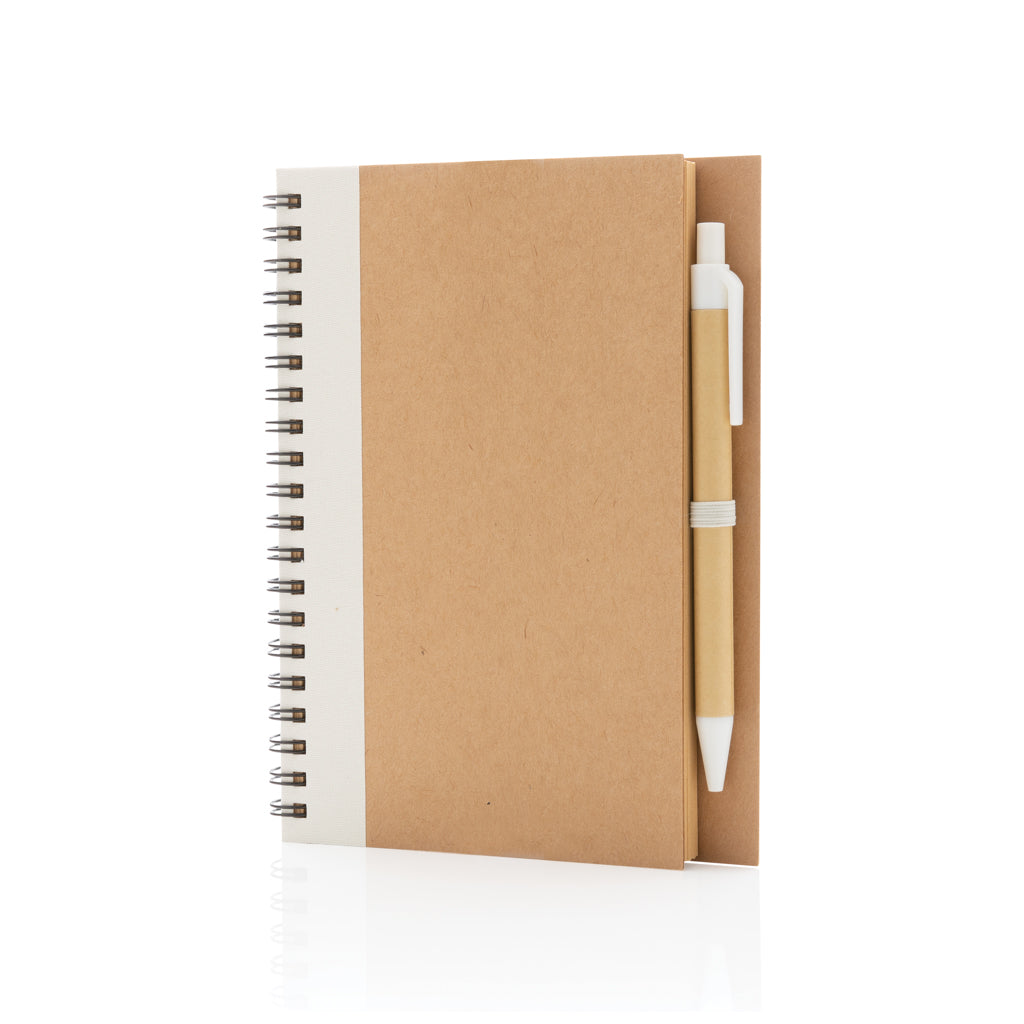 Taccuino a spirale in cartoncino con penna. Articolo in blu disponibile in 3 colori