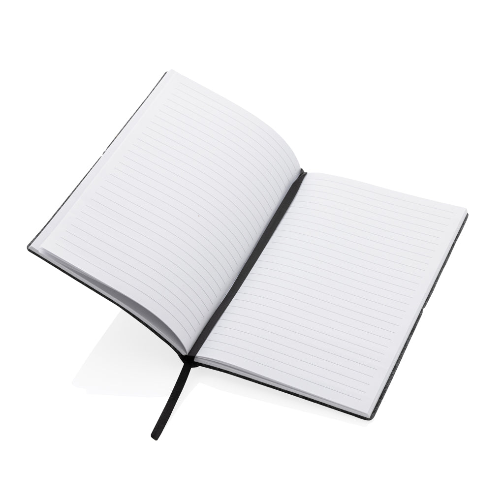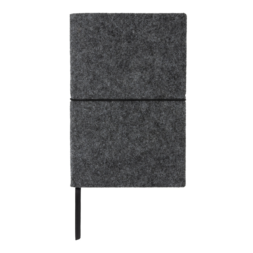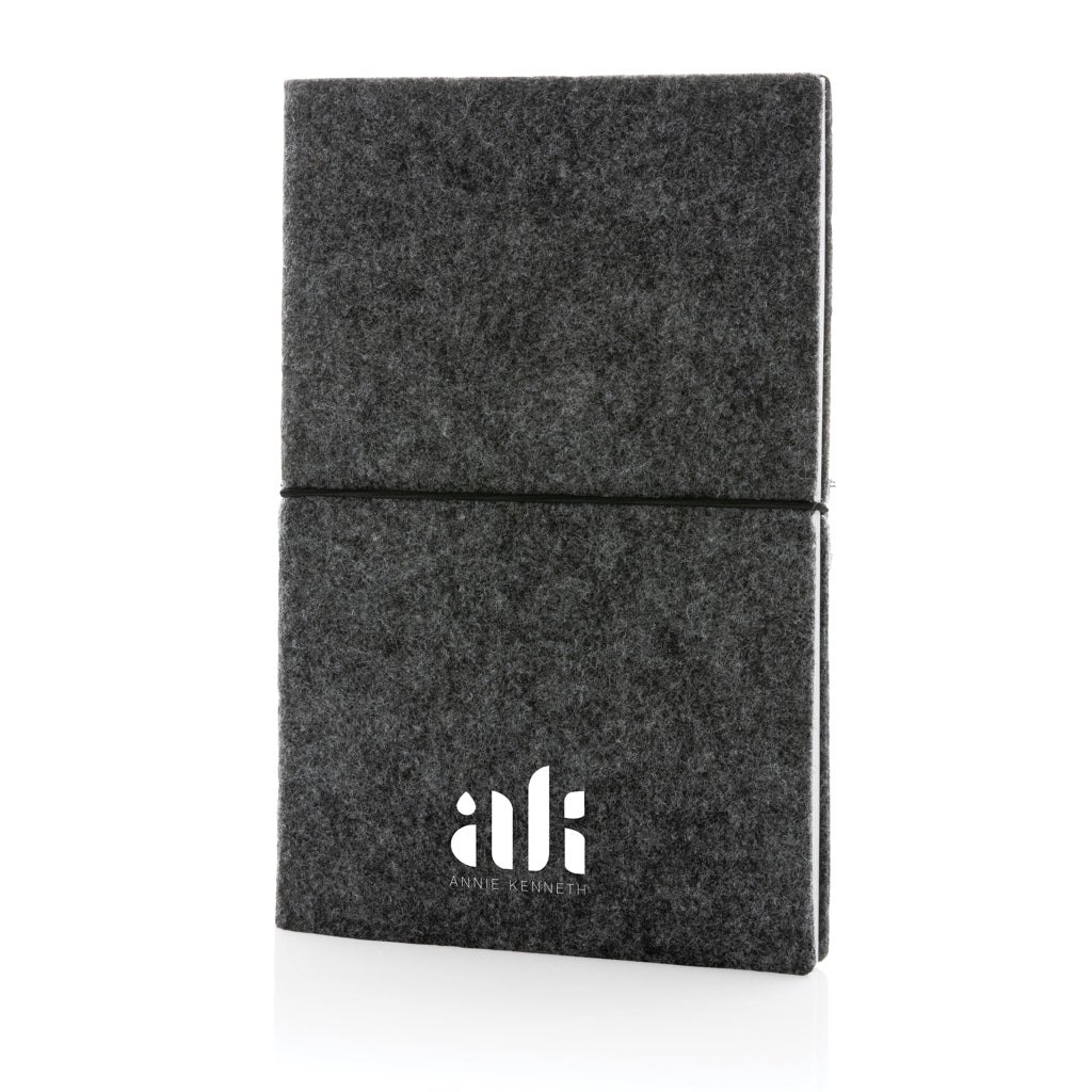 Taccuino A5 con copertina morbida in feltro certificato GRS. Modello in nero disponibile in 2 colori