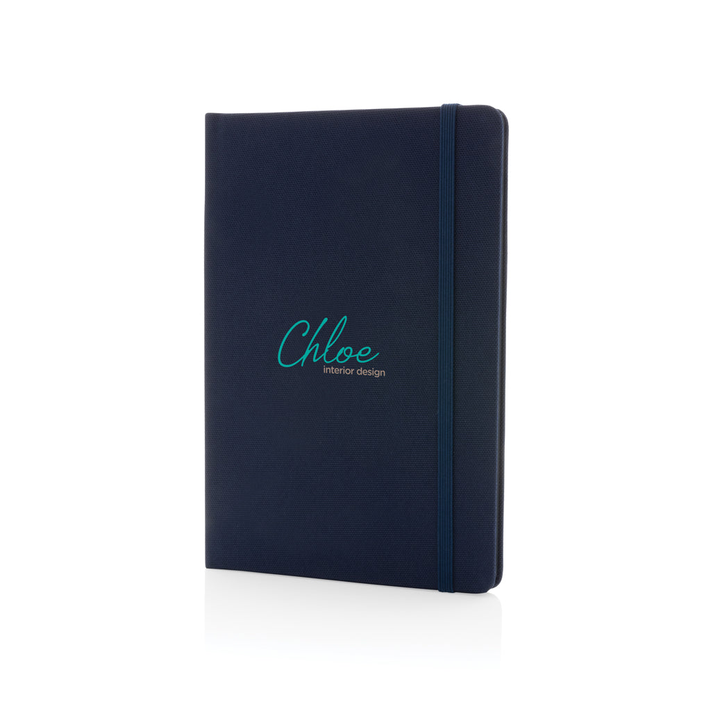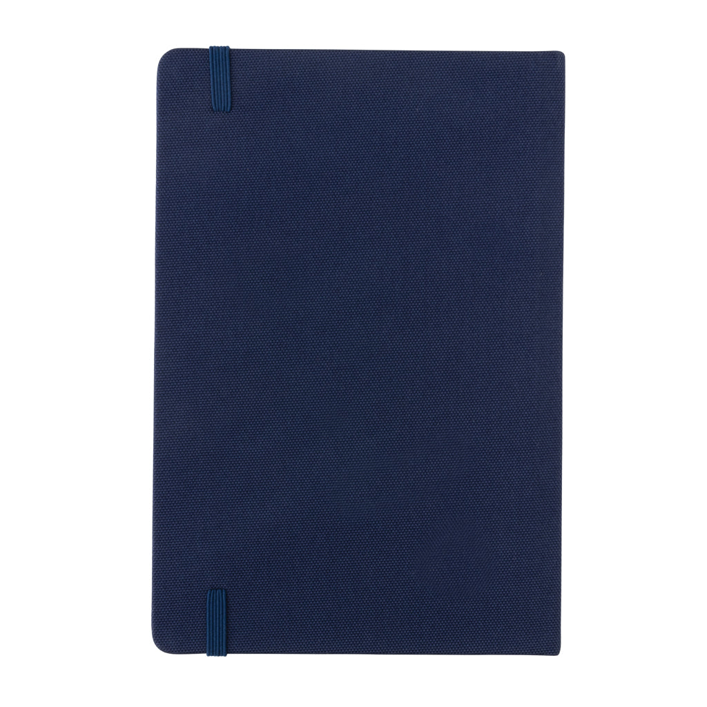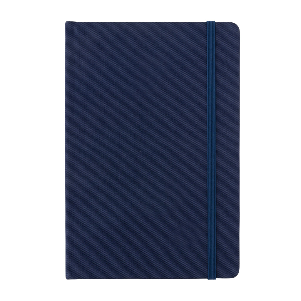Taccuino A5 in RPET certificato GRS. Articolo in blu disponibile in 4 colori