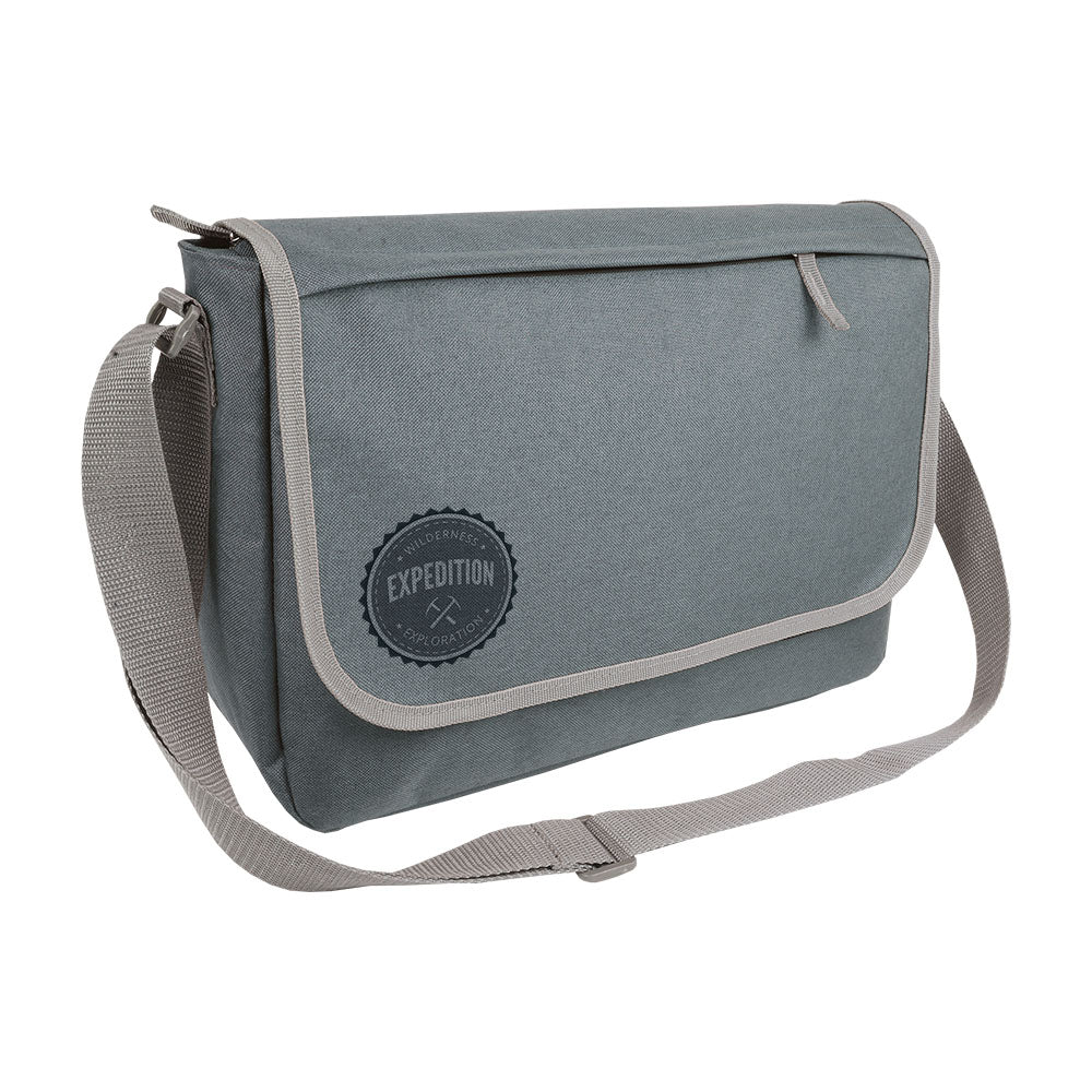 Cartella in poliestere 600D con tracolla regolabile e 2 tasche. Modello in grigio disponibile in 2 colori