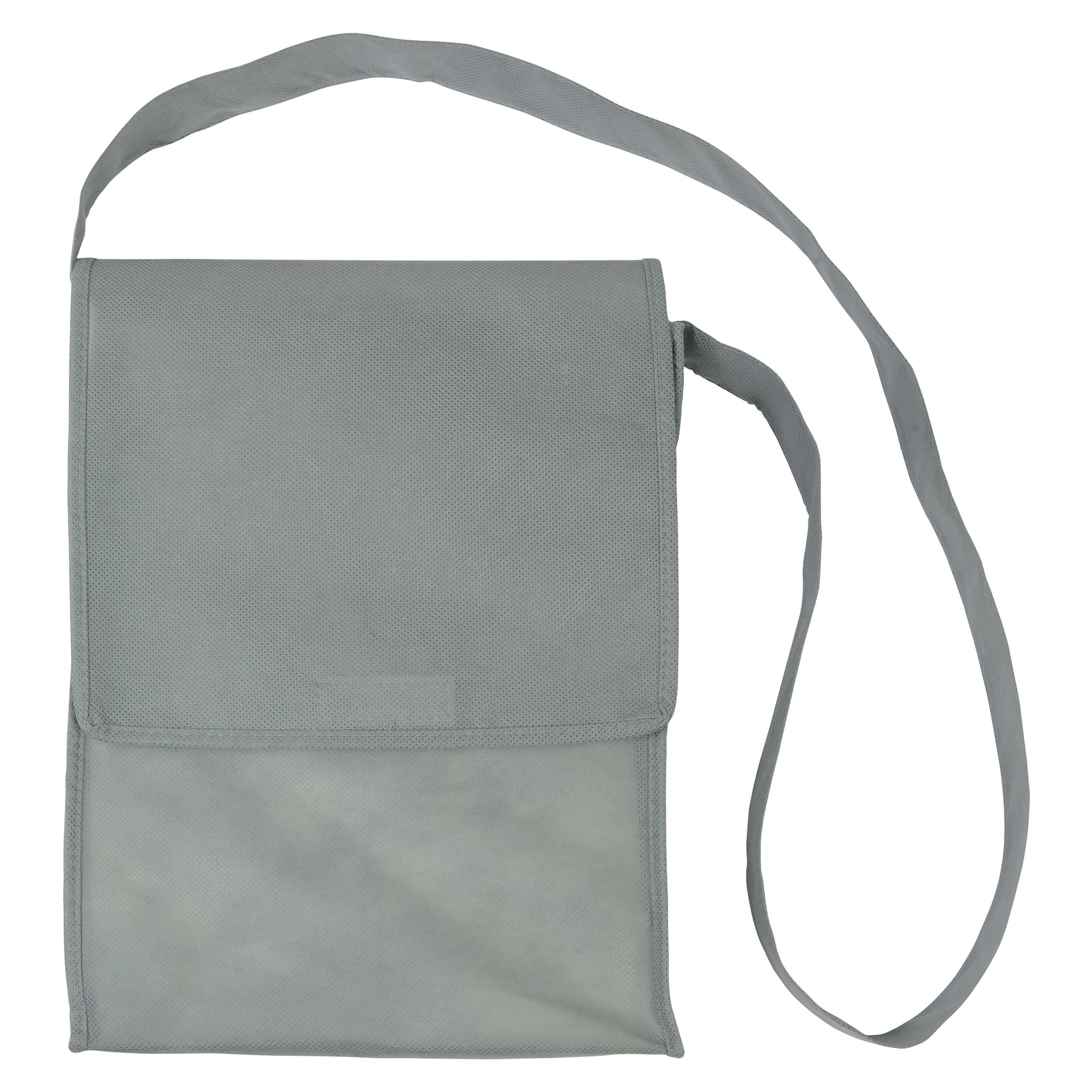 Shopper tascapane con soffietto in TNT 80 g/m² cucito con tracolla. Variante in grigio disponibile in 4 colori