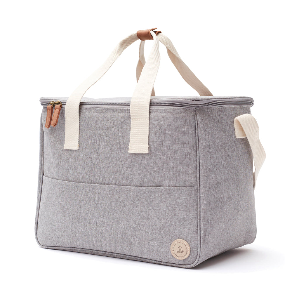 Questa spaziosa borsa frigo con coperchio mette fine alle vecchie e noiose versioni in plastica. E' in tessuto melange accompagnato da dettagli in PU che la rendono elegante come una normale borsa. Il rivestimento in PEVA mantiene il fresco per un lungo periodo di tempo e facilita la pulizia. Include tracolla e manici. Capacità L 24