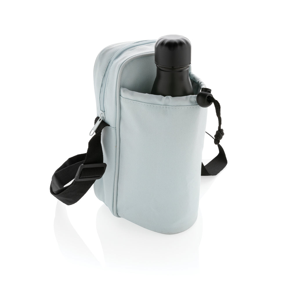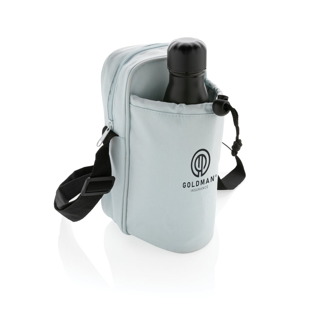 Tieni le mani libere e la bevanda fresca e rinfrescante durante un'escursione. Questa borsa a tracolla si adatta a tutte le tue necessità; include tasca isolata porta bottiglia. Può contenere qualsiasi bottiglia fino a un'altezza di 25 cm e un diametro di 7,5 cm. Tracolla regolabile. Esterno 100% poliestere 600D, interno 210D poliestere e PEVA. Senza PVC. Capacità L 2