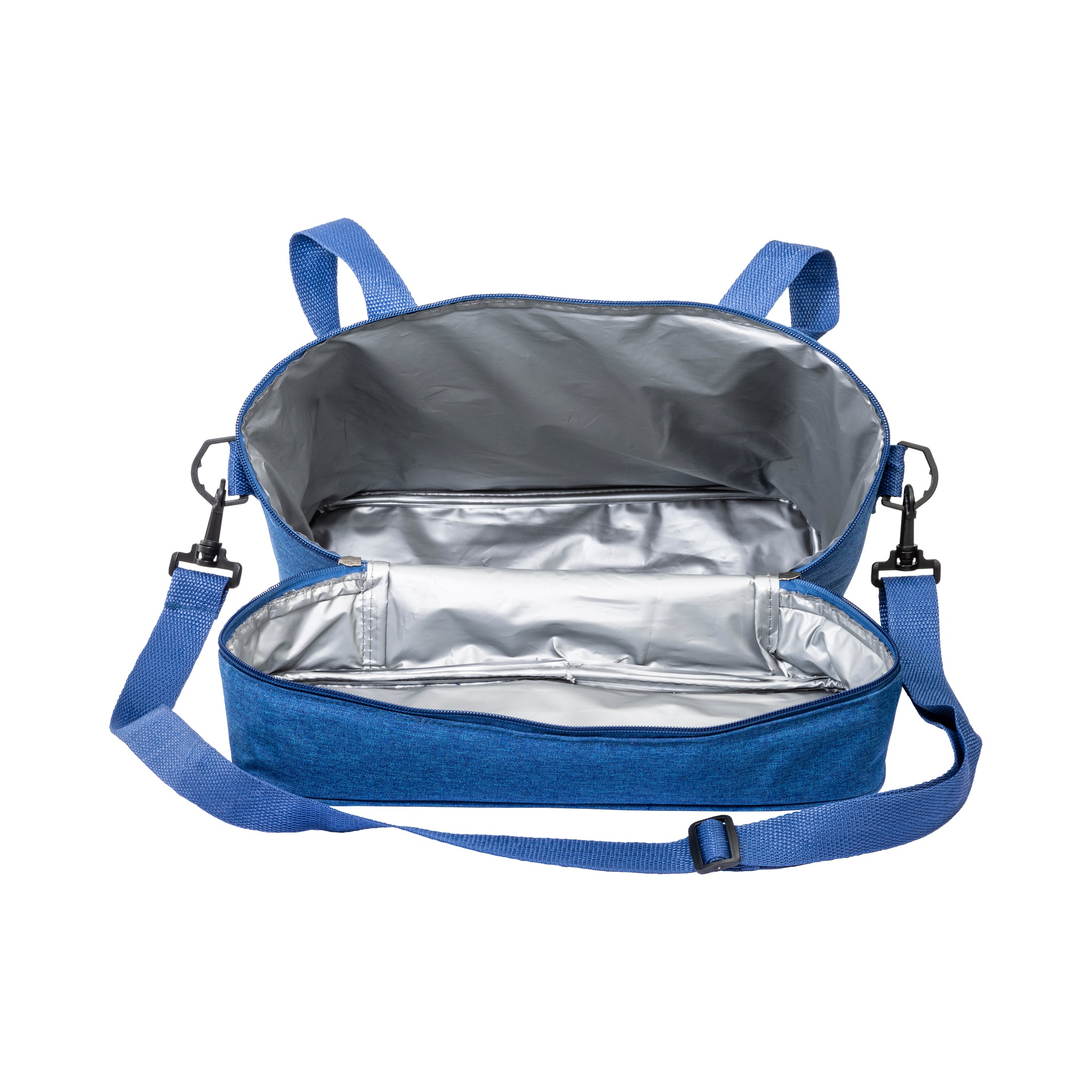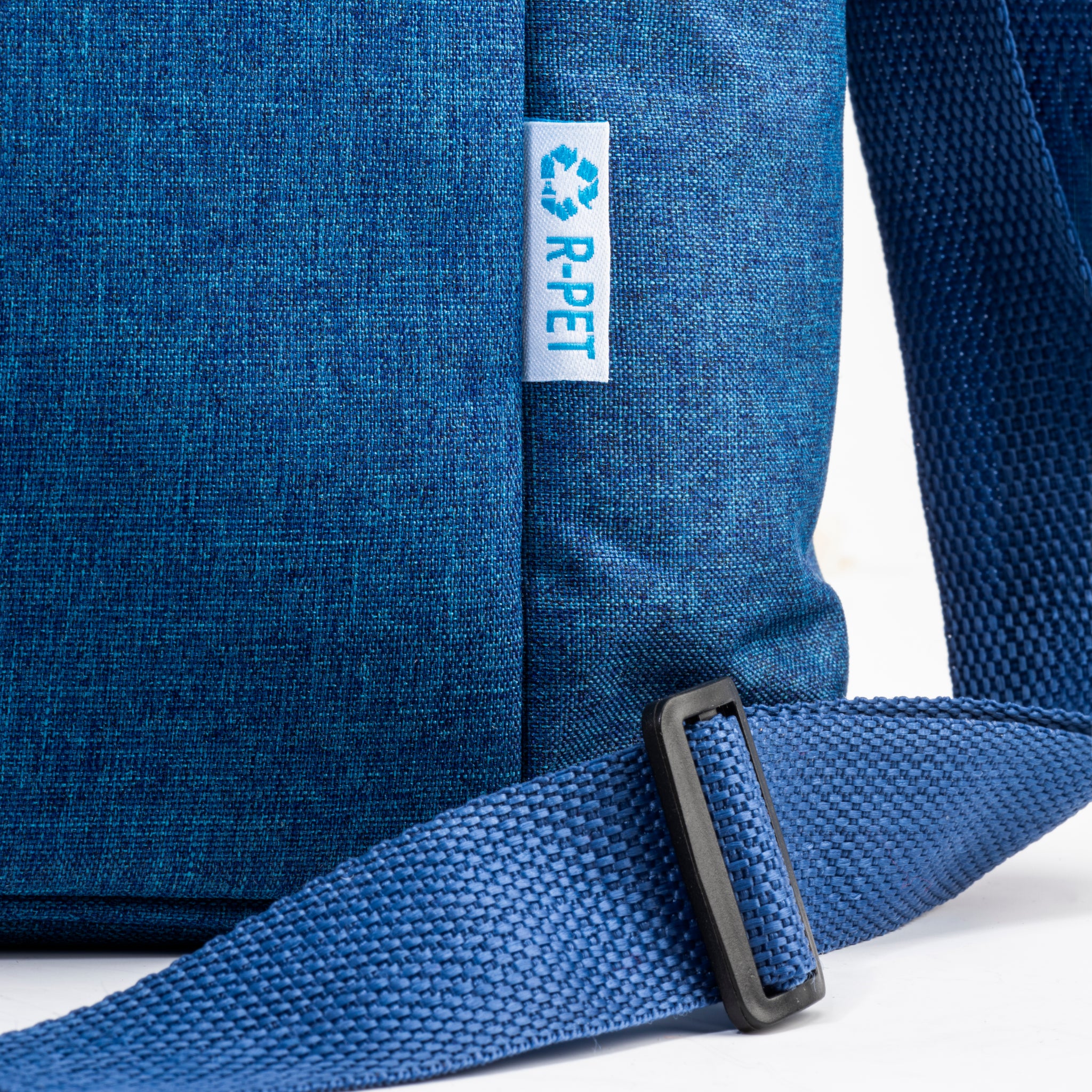 Borsa termica in r-pet melange con interno bianco in PEVA.. Modello in blu disponibile in 1 colore
