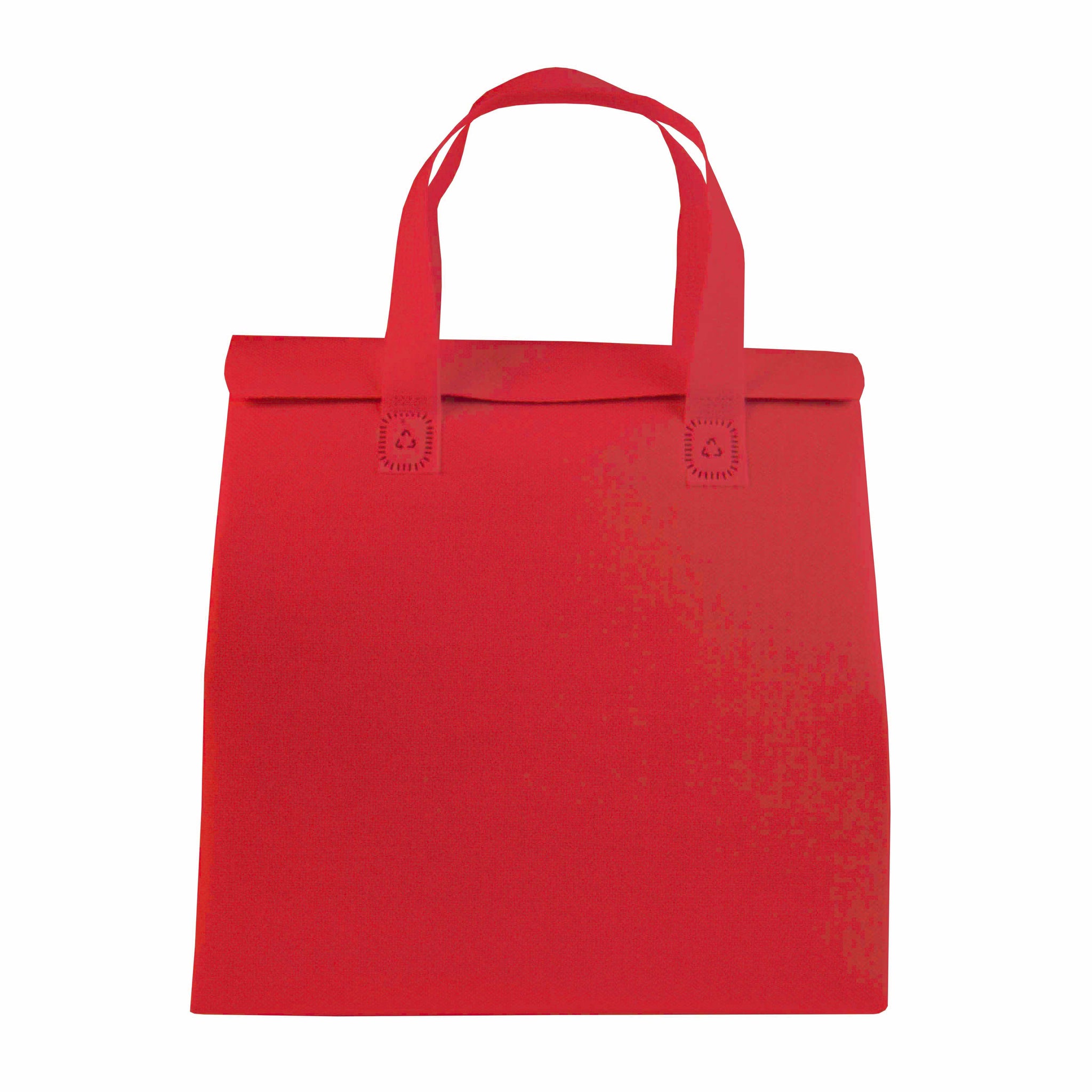 Borsa frigo in TNT laminato 100 g/m², chiusura con velcro. Variante in rosso disponibile in 3 colori