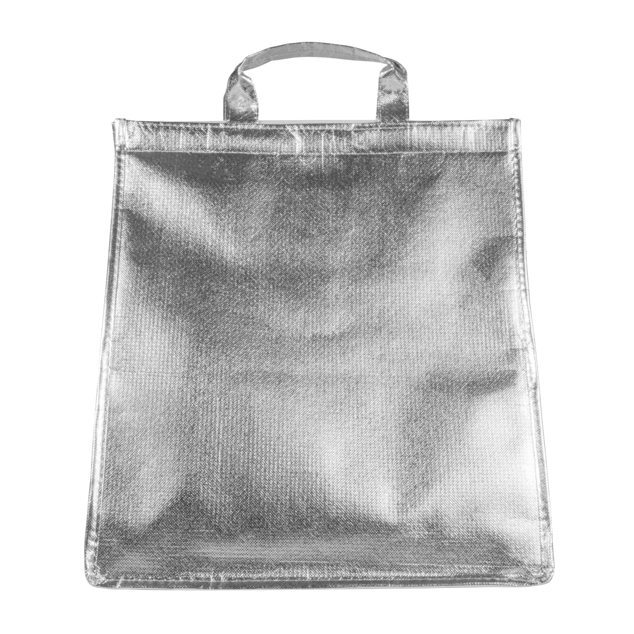 Borsa frigo porta torte/pizza in tnt laminato 110 g/m², chiusura con velcro. Modello in argento disponibile in 1 colore