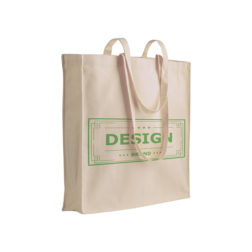 Shopper con soffietto in cotone 220 g/m², manici lunghi. Modello in naturale disponibile in 12 colori