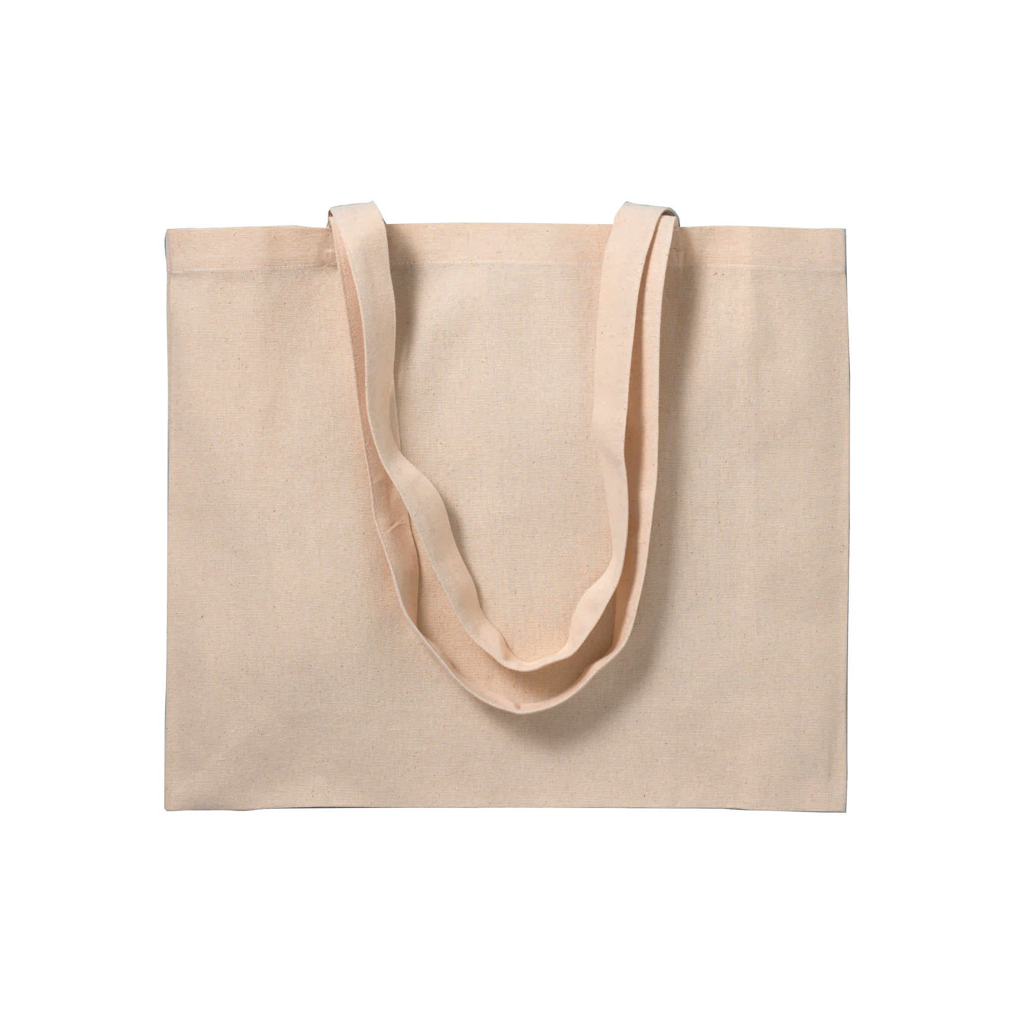 Shopper con soffietto in cotone 200 g/m², manici lunghi. Modello in naturale disponibile in 9 colori
