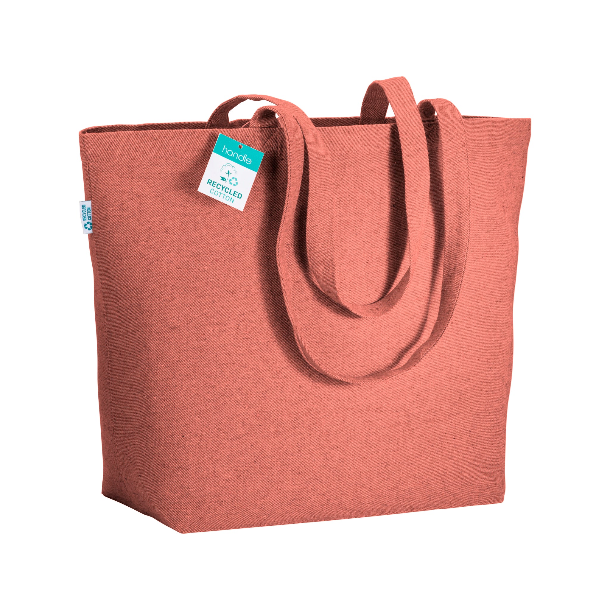 Shopper con soffietto alla base in cotone riciclato 280 g/m², manici lunghi