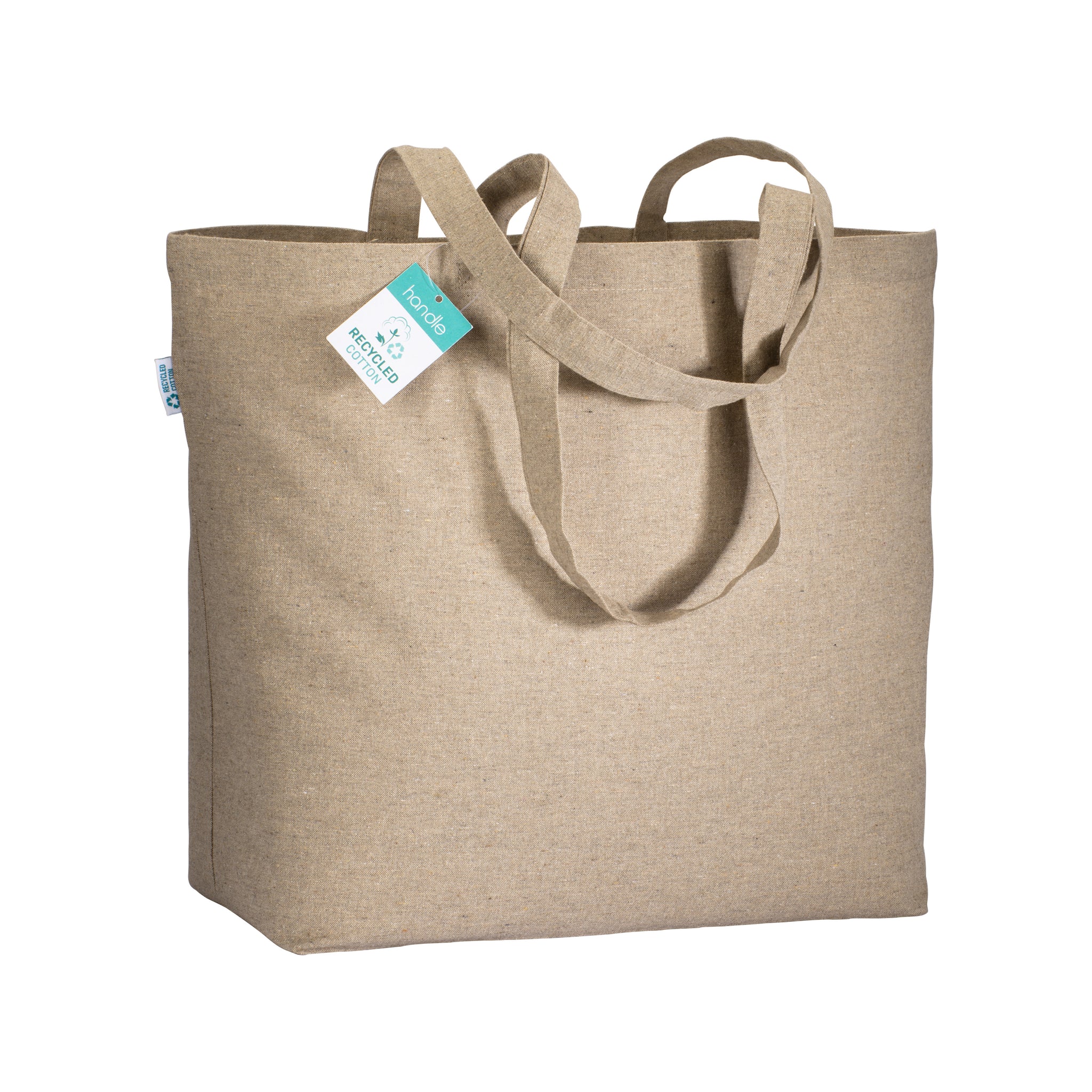 Shopper in cotone riciclato 190 g/m² con soffietto alla base, manici lunghi