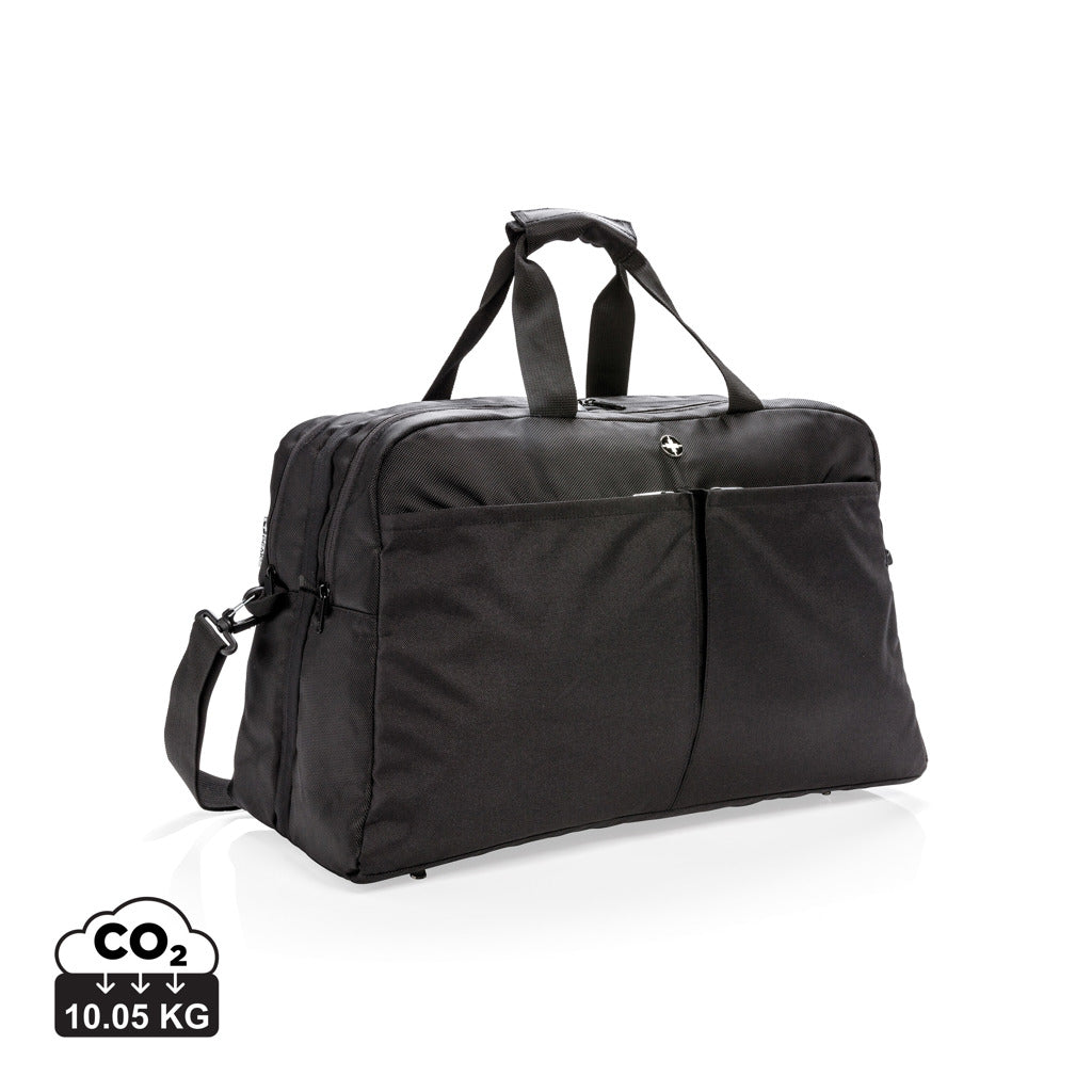 Questo ibrido dal design rivoluzionario combina il meglio di 2 mondi. Lo spazio di un borsone e l'organizzazione di una valigia. Una cerniera centrale permette l'accesso a 2 scompartimenti. Include uno scomparto porta PC da 15,6". Sul retro c'è una tasca porta documenti un taschino con protezione RFID. 2 tasche con cerniera sulla parte frontale. Senza PVC. Capacità L 45