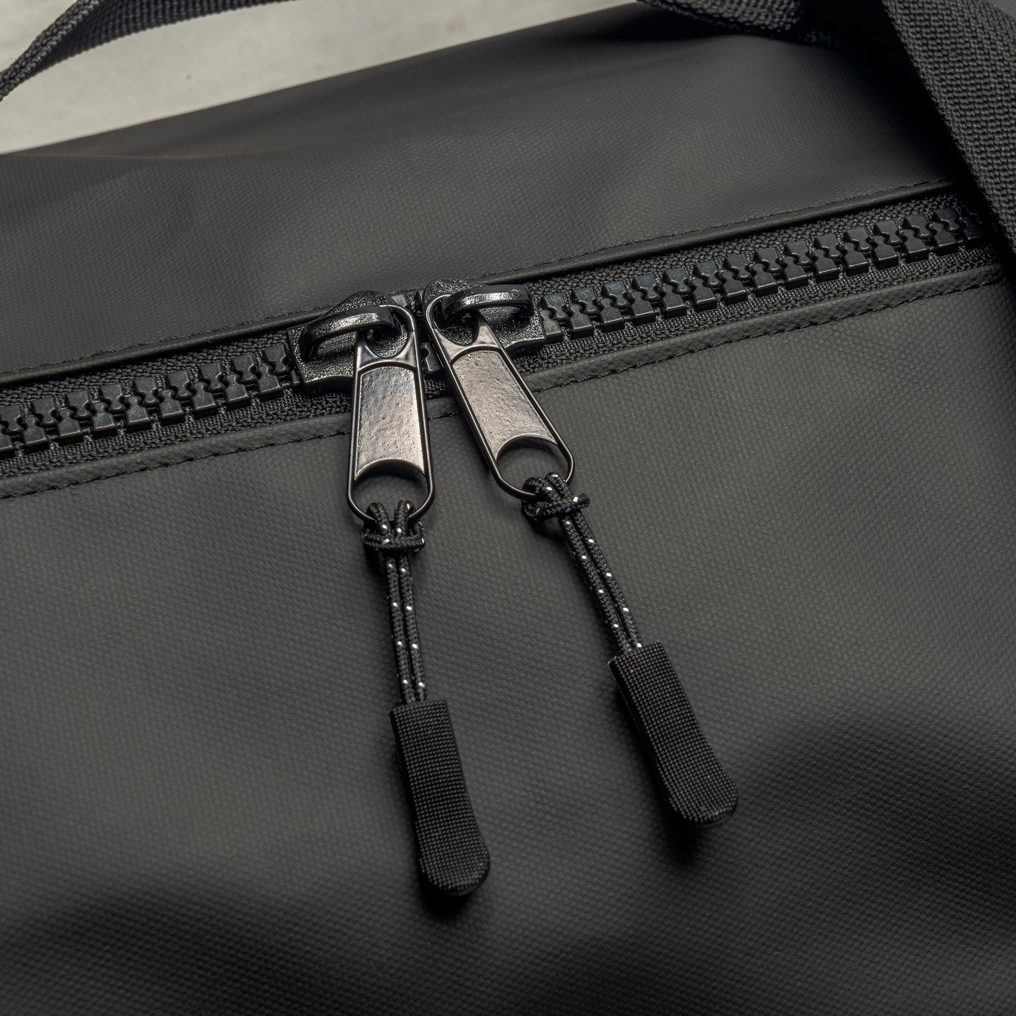 Borsa Duffle in poliestere water resistant. Tracolla regolabile e removibile con fibbia. Modello in nero disponibile in 1 colore
