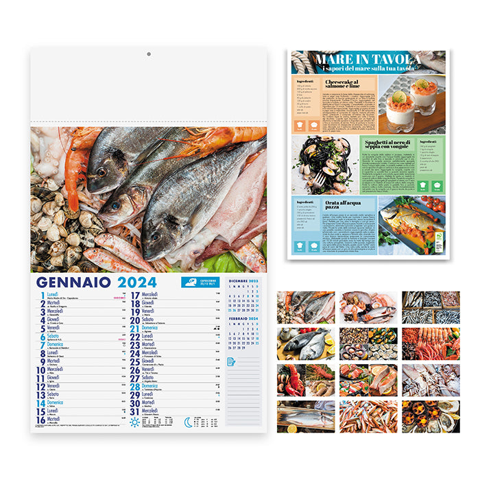 Calendari personalizzabili 2024 con illustrazioni di mare in tavola modello in bianco Snemes disponibile in 1 colore