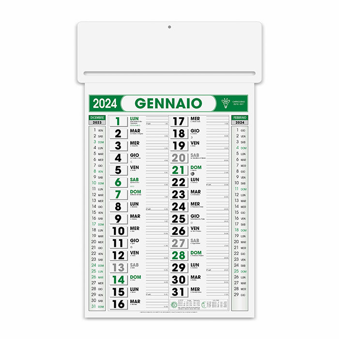 Calendari personalizzati 2024 modello olandese passafoglio, mensile 12 fogli, carta naturale 70 g., testata fustellata rinforzata triplo strato, festività internazionali. Lasciati attrarre dal fascino intramontabile dei calendari personalizzati con logo, nonostante gli anni passino questi gadget pubblicitari vengono utilizzati ancora come articoli promozionali. Sono sicuramente i più tipici regali natalizi aziendali.
