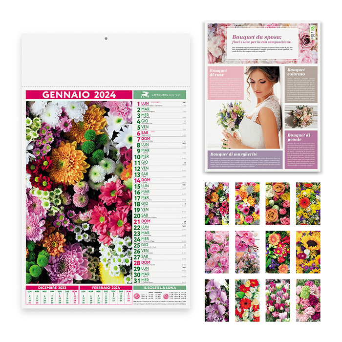 Calendari personalizzati nella testata con illustrazioni sui fiori modello in bianco Flarop disponibile in 1 colore