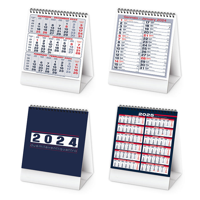 Calendari da tavolo 2024 personalizzabili con logo, spiralati e mensili 13 fogli, carta bianca 90 g., tabella anno 2024 in ultima pagina, supporto cartoncino bianco 450 g., festività internazionali. Hai come clienti molte ditte? perché non fare come regali aziendali per i tuoi prossimi gadget natalizi i calendari da tavolo personalizzati 2024, sono articoli promozionali molto graditi in quanto utilizzati come gadget da scrivania, sono facili e veloci da consultare e sui quali ci puoi annotare eventuali appuntamenti.