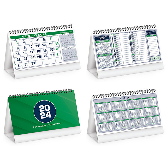Calendari da tavolo 2024 da personalizzare con logo, spiralati e mensili 13 fogli, carta naturale 90 g., tabella anno 2024 in ultima pagina, supporto cartoncino bianco 450 g., festività internazionali. Non dimenticare tra i gadget natalizi i calendari da tavolo personalizzati 2024, possono essere dei regali aziendali apprezzati dai clienti in quanto articoli promozionali che si usano tutti i giorni in ufficio come gadget da scrivania.