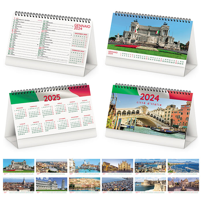 Calendari da tavolo pubblicitari 2024 con illustrate le città d'Italia modello in bianco Alopeg disponibile in 1 colore