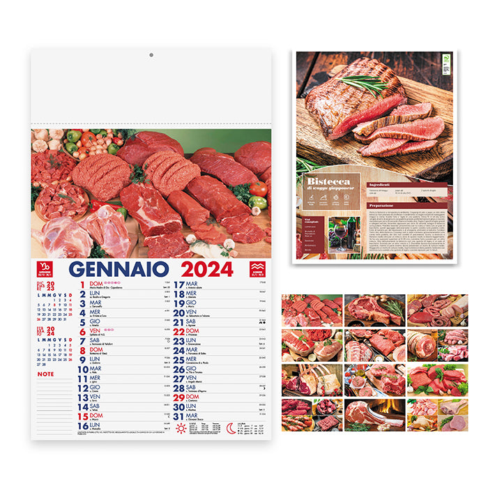 Calendari da personalizzare con logo 2024 con illustrazioni di carni modello in bianco Fratag disponibile in 1 colore