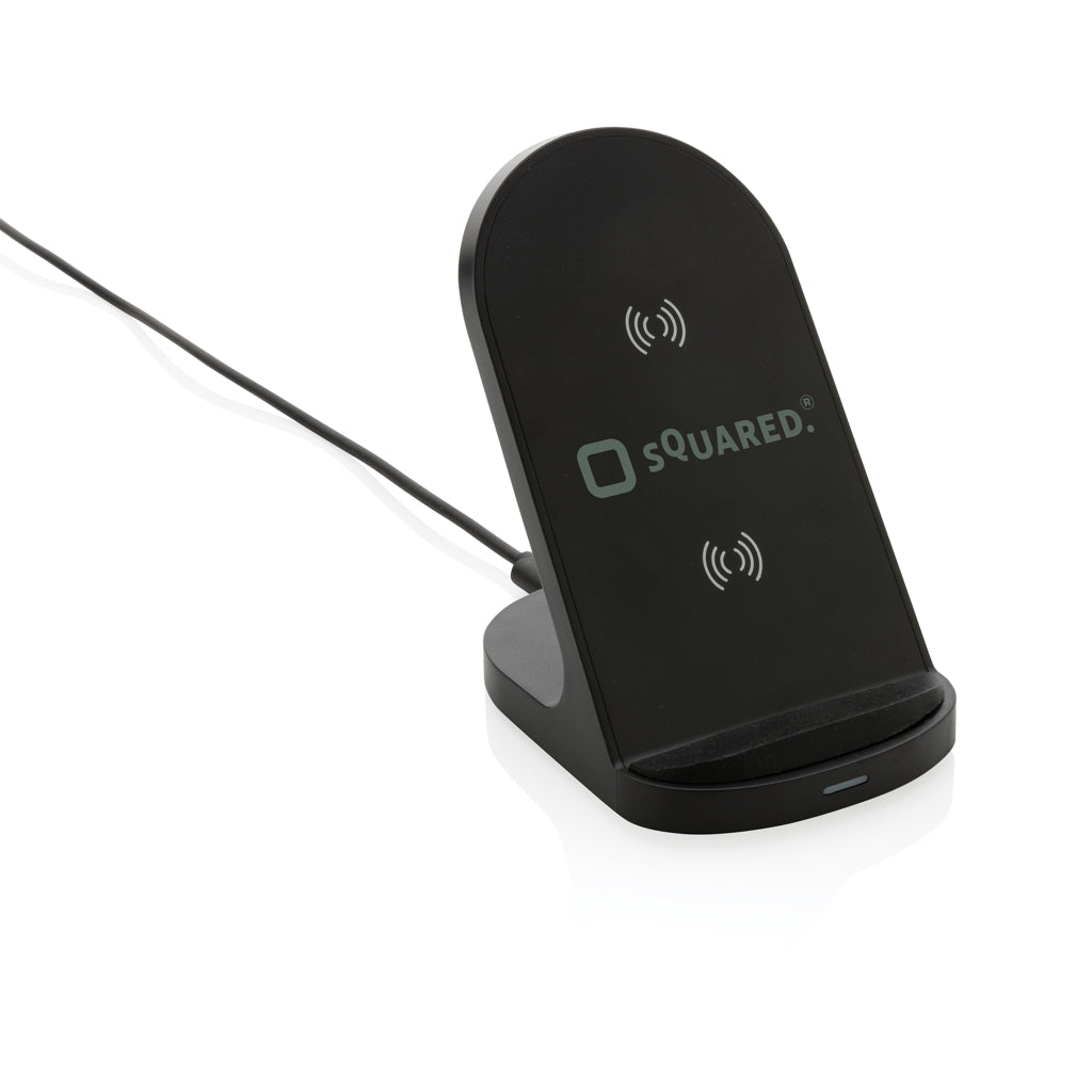 Supporto wireless 15W in plastica riciclata RCS. Modello in nero disponibile in 2 colori