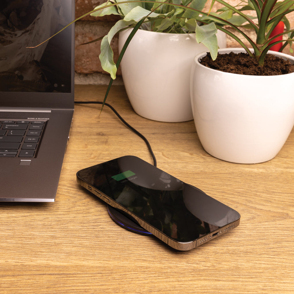 Caricatore wireless ultra veloce da 15W realizzato con ABS riciclato certificato RCS (Recycled Claim Standard). Contenuto totale riciclato: 66% in base al peso totale dell'articolo. La certificazione RCS garantisce una filiera completamente certificata dei materiali riciclati. Ricarica wireless compatibile con Android ultime generazioni, iPhone 8 e superiori. Articolo e accessori non contengono PVC. Include cavo di ricarica type C da 120 cm in TPE riciclato certificato RCS. Confezionato in scatola FSC mix. TypeC in; Input: 5V/2A; 9V/2A; 12V/1,5A; output wireless 5V/1A;9V/1.1A; 9V/1,67A (15 W).