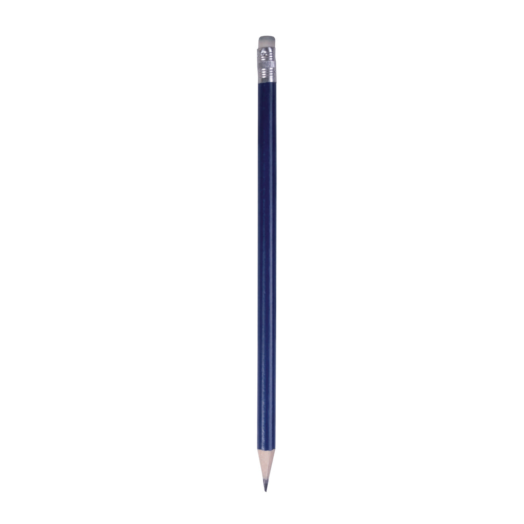 Matita in legno con mina in grafite, a sezione cilindrica, con gommino bianco. Modello in blu disponibile in 7 colori