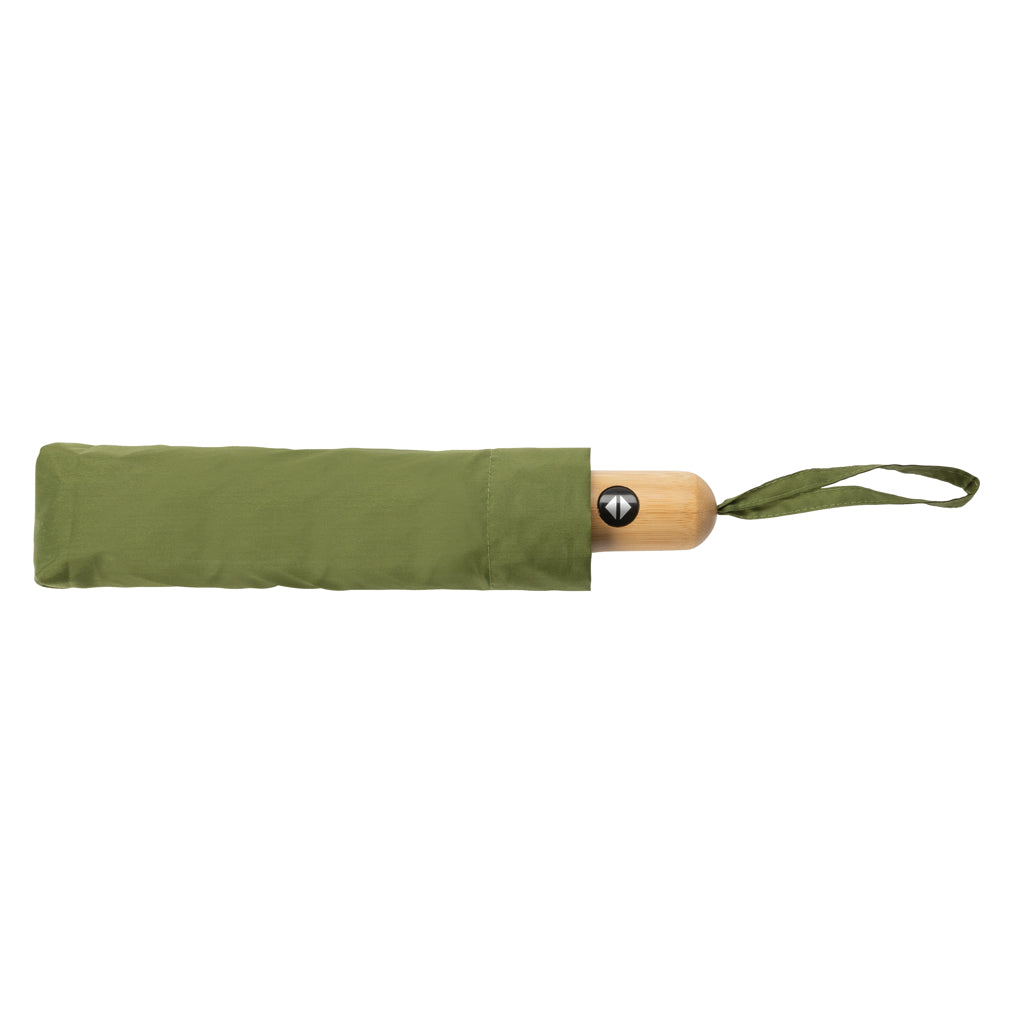 Mini ombrello bambù apri/chiudi 21" rPET 190T Impact AWARE™. Articolo in verde disponibile in 6 colori
