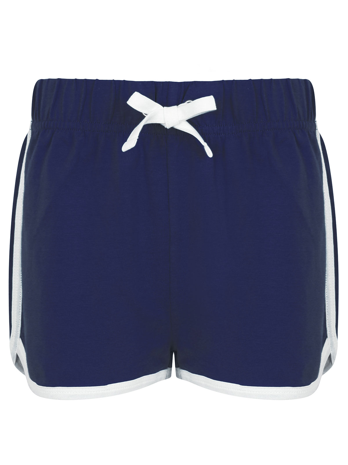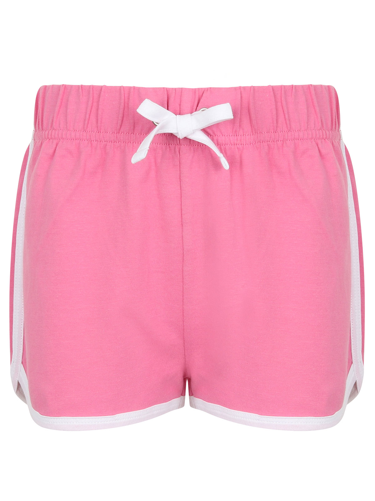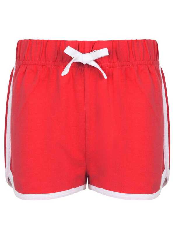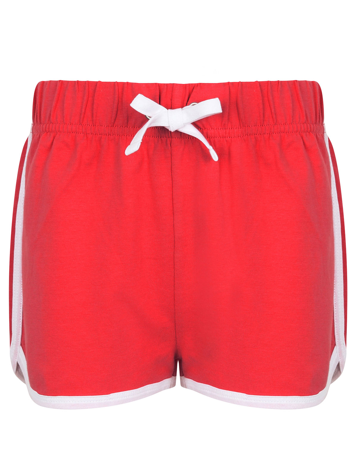 Pantaloncini personalizzabili con logo per abbigliamento personalizzato sportivo bambino, 100% cotone single jersey, dal look retrò con cuciture orlo e cordoncino in contrasto, elastico in vita, stile unisex, etichetta a strappo, per un facile re-branding.