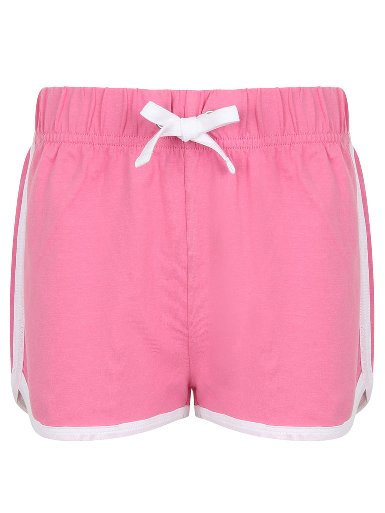 Pantaloncini personalizzabili con logo per abbigliamento personalizzato sportivo bambino, 100% cotone single jersey, dal look retrò con cuciture orlo e cordoncino in contrasto, elastico in vita, stile unisex, etichetta a strappo, per un facile re-branding.