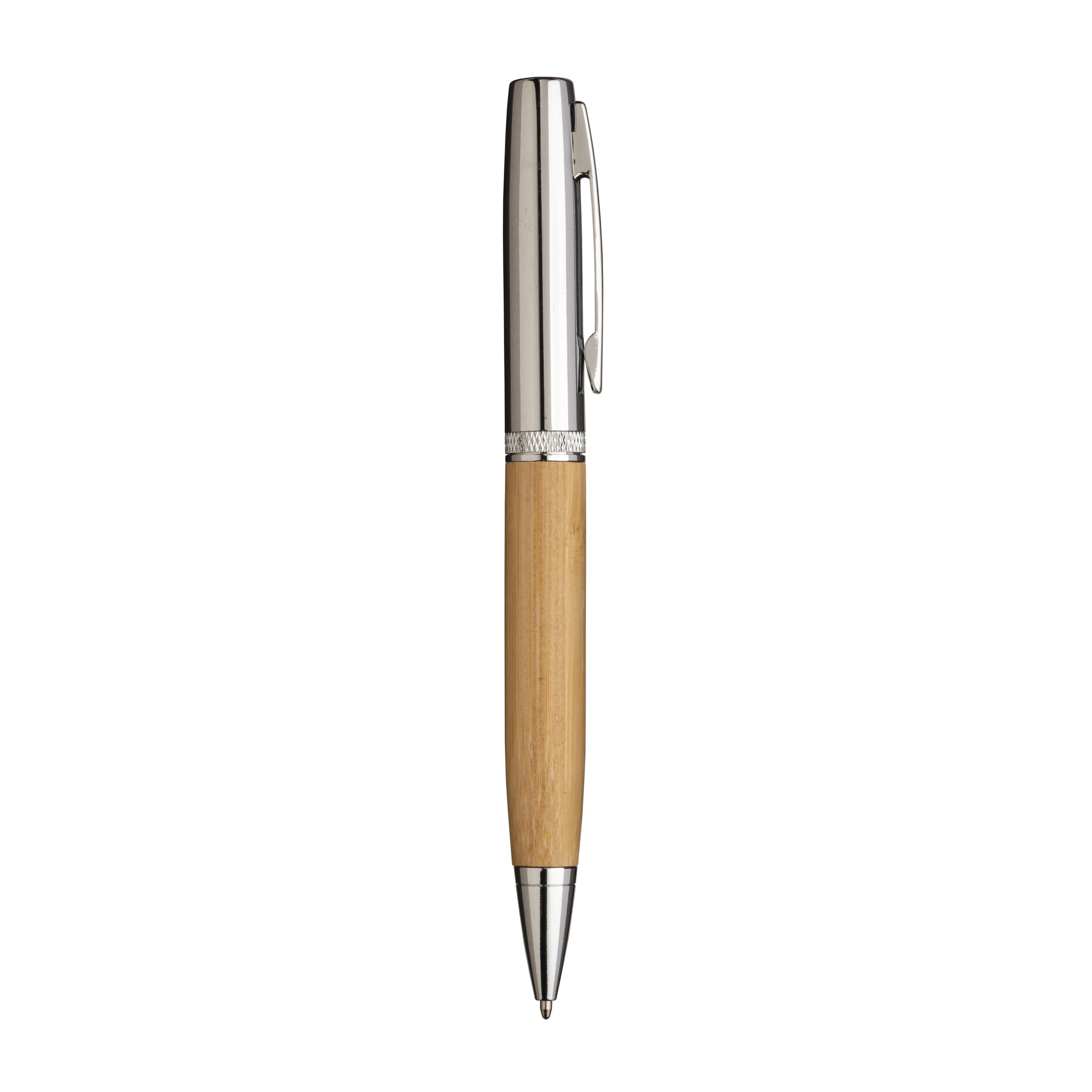 Penna twist in metallo con fusto in bambù. Modello in naturale disponibile in 1 colore
