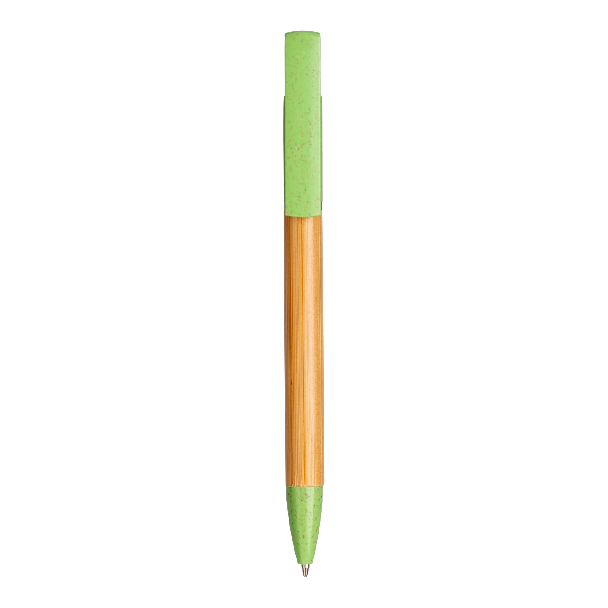 Penna twist in bambù e paglia di grano con stand porta cellulare. Modello in verde disponibile in 4 colori