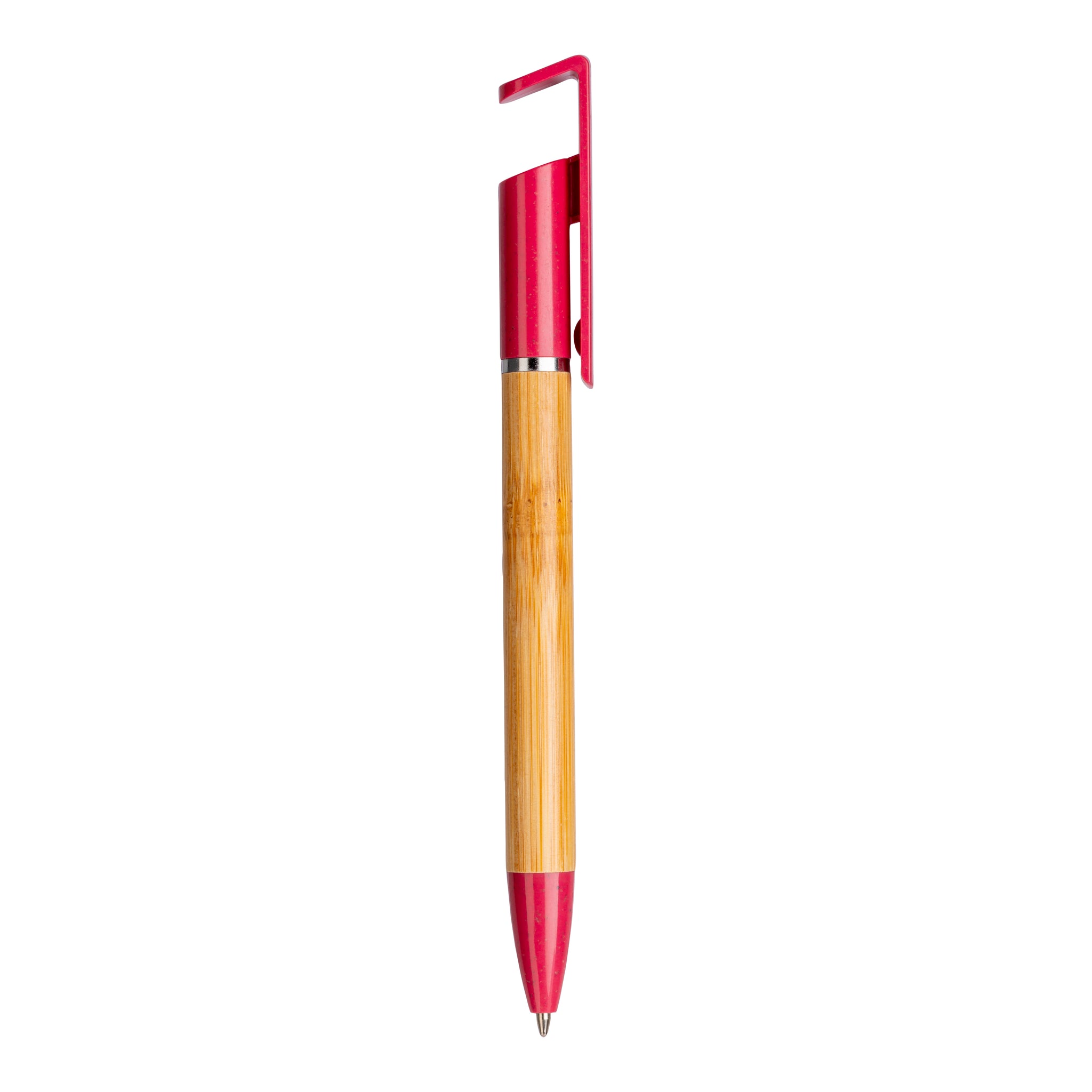 Penna twist in bambù e paglia di grano con stand porta cellulare