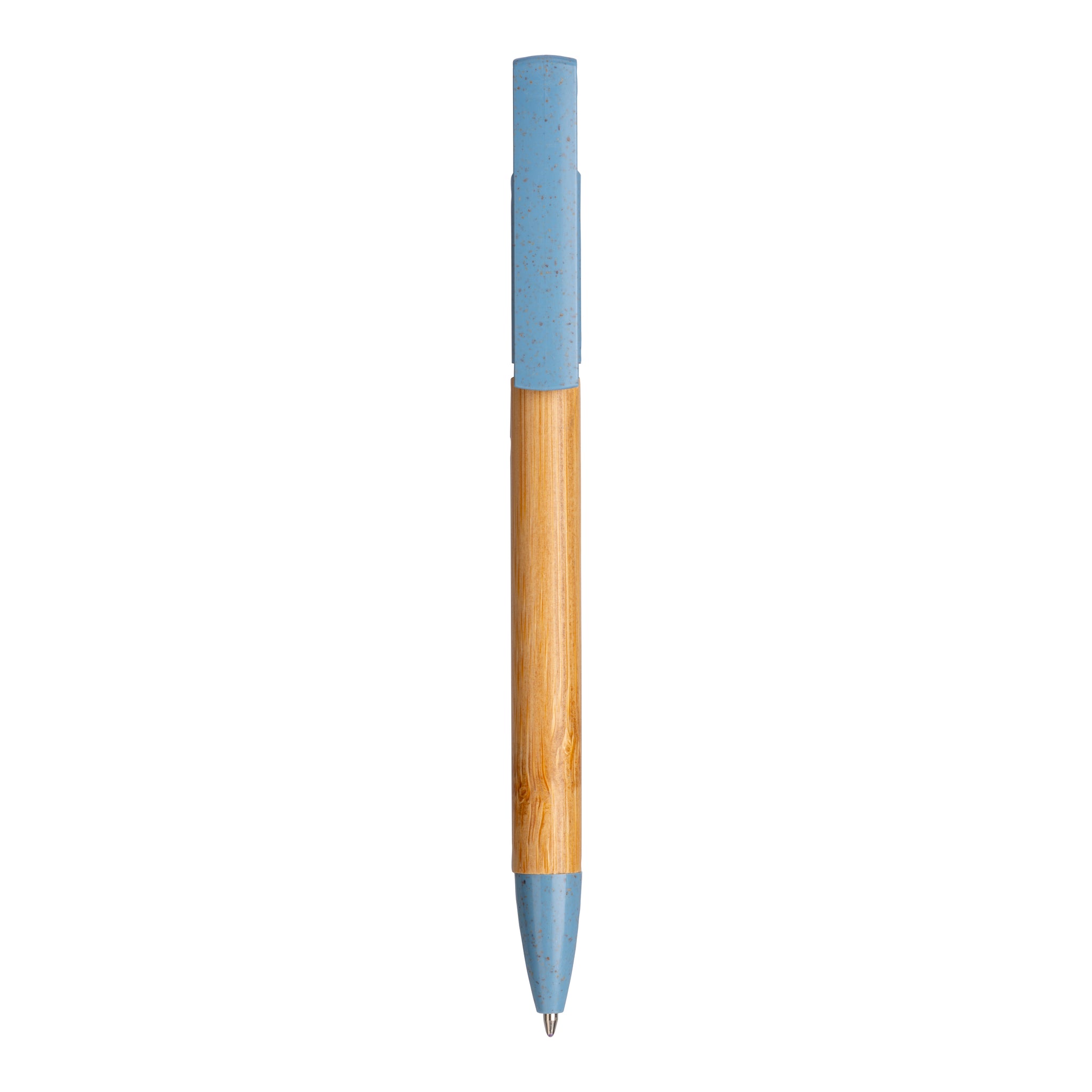Penna twist in bambù e paglia di grano con stand porta cellulare. Variante in azzurro disponibile in 4 colori