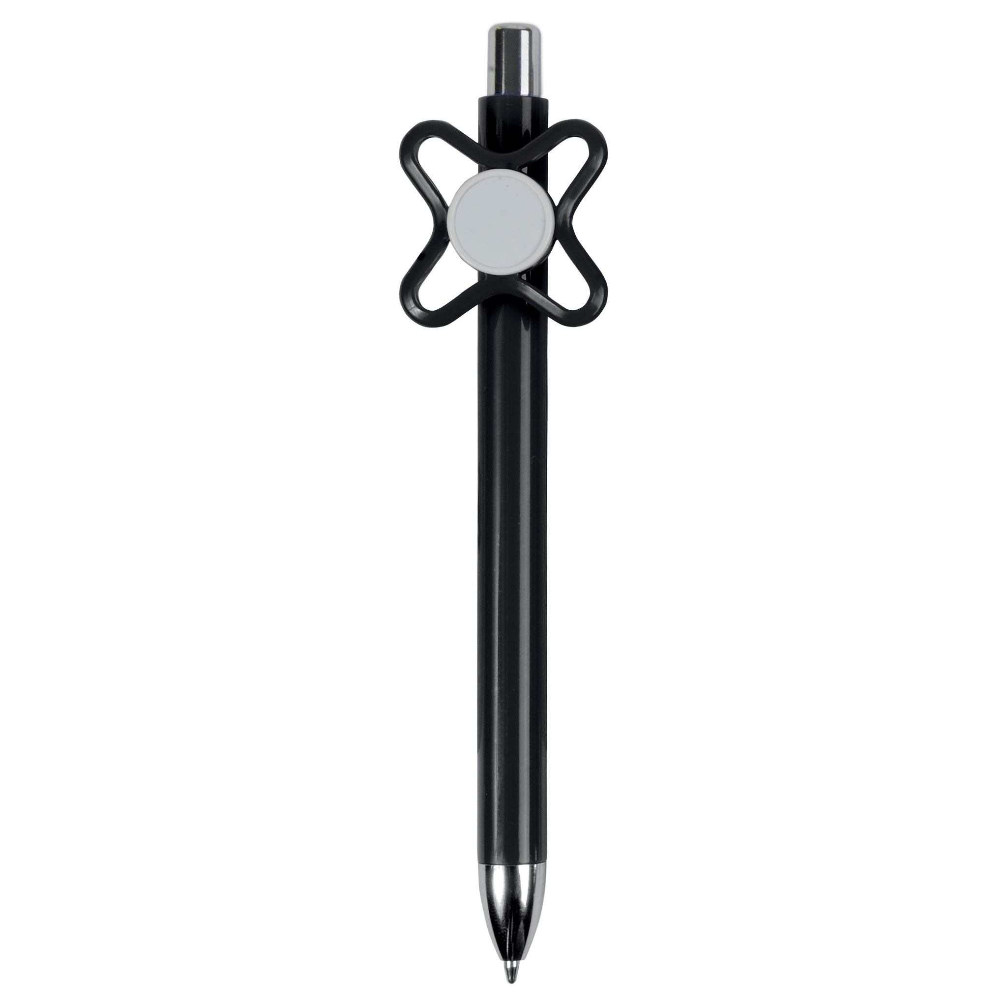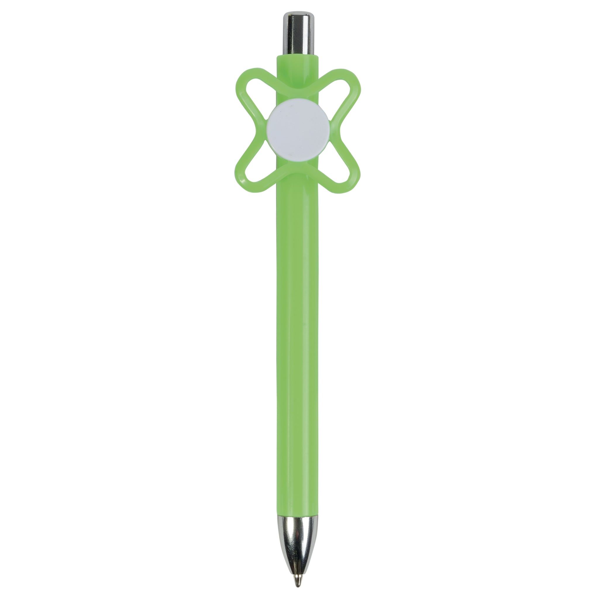 Penna a scatto in plastica colorata con spinner colorato. Spazio centrale dello spinner idoneo per logo resina